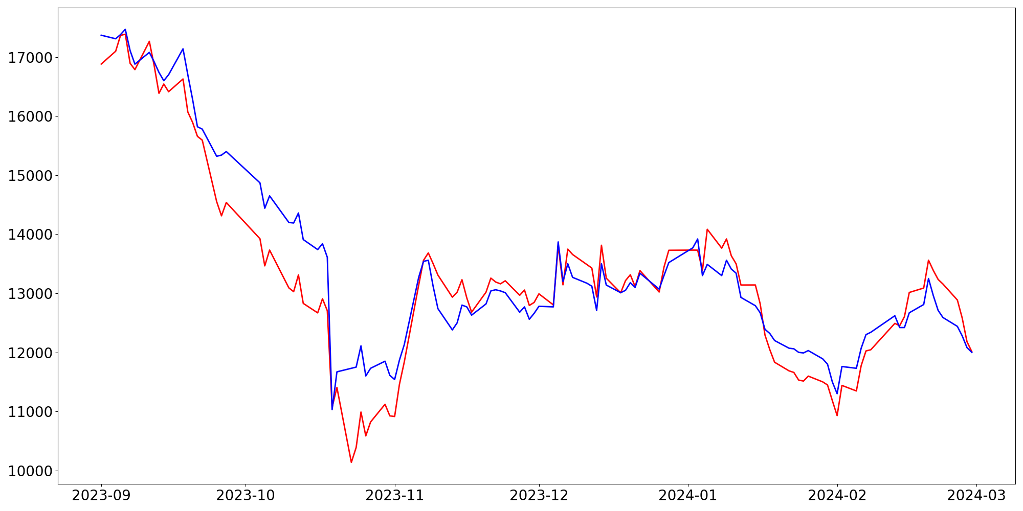 [ - : 실제값(종가) / - : 예측값(종가) ]