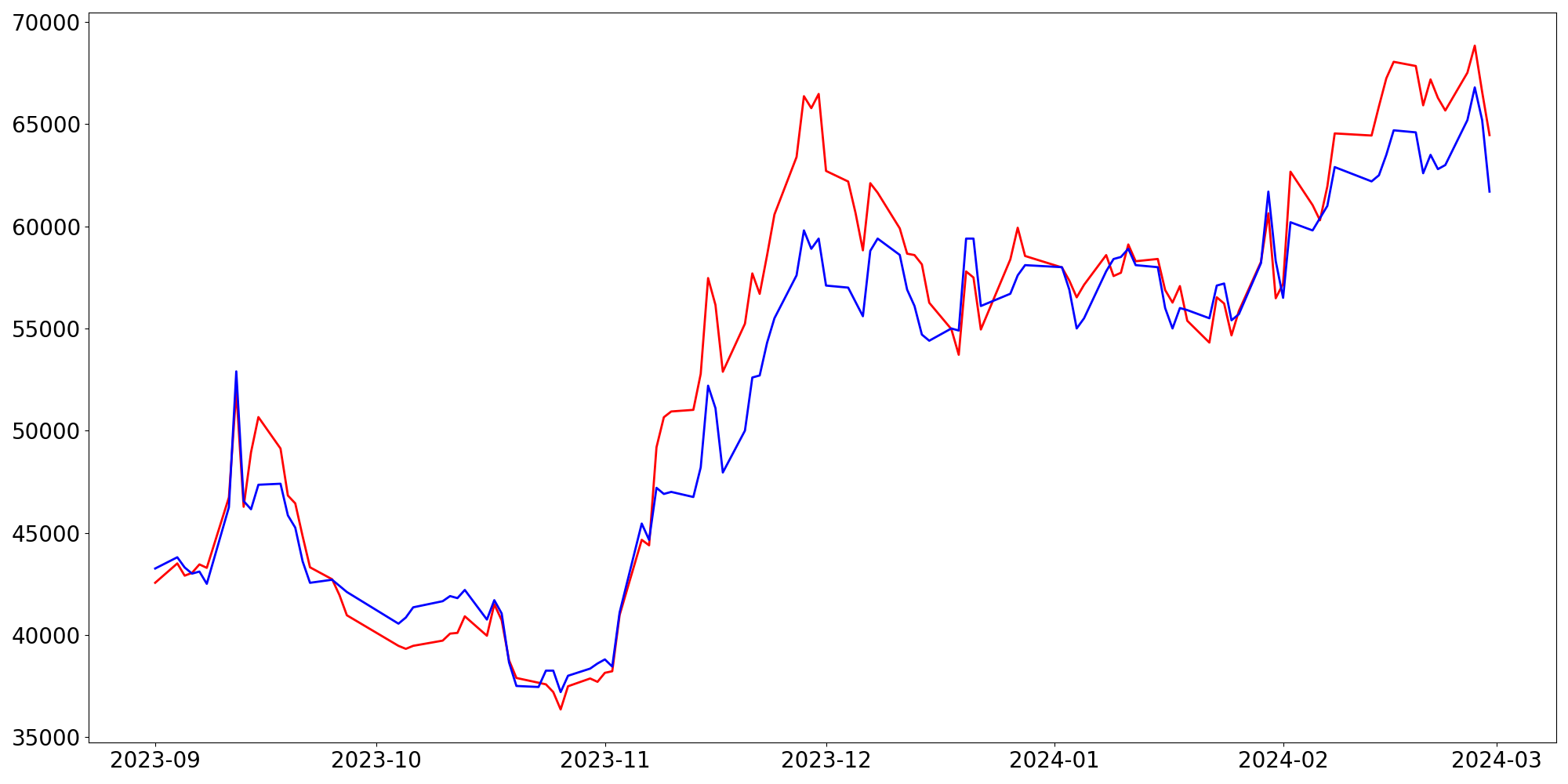[ - : 실제값(종가) / - : 예측값(종가) ]