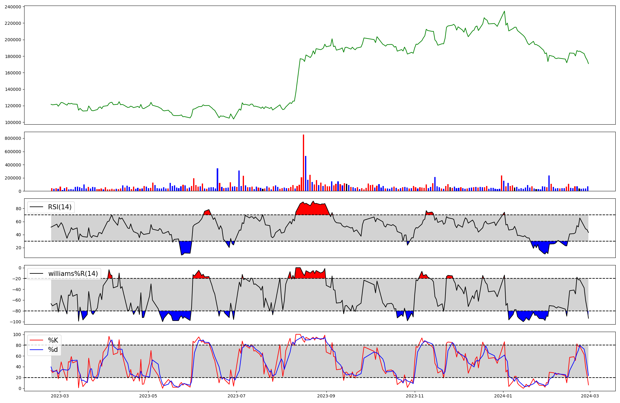 | RSI | Williams %R | stochastic(%K) | |