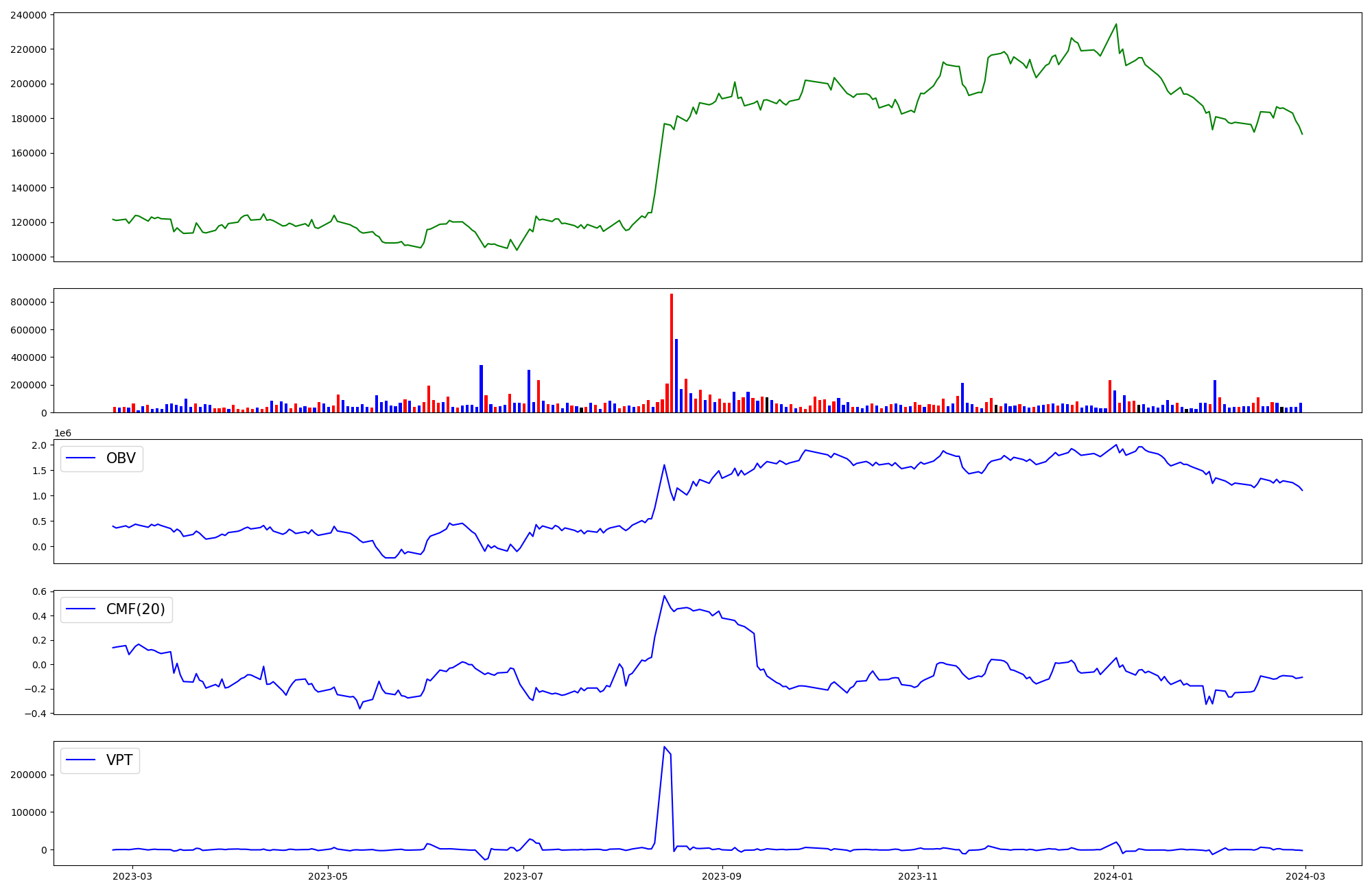 | OBV | CMF | VPT | |