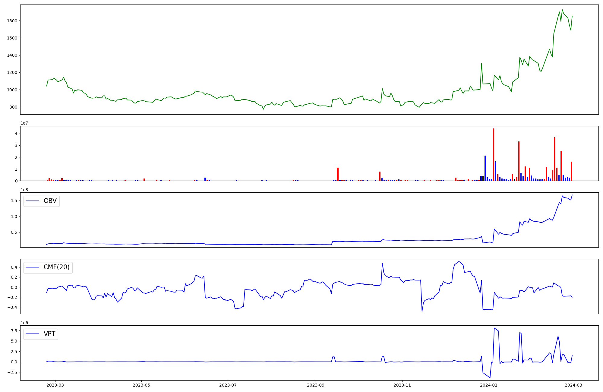 | OBV | CMF | VPT | |