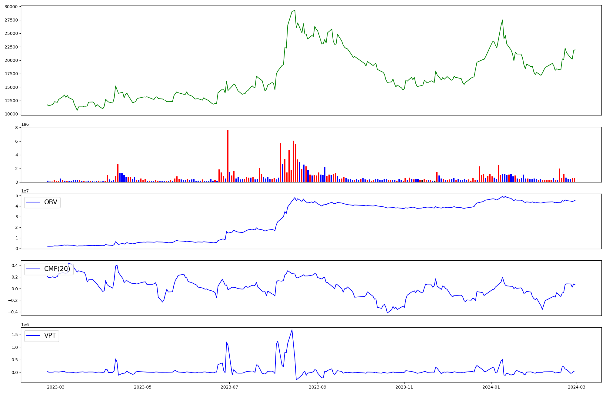 | OBV | CMF | VPT | |