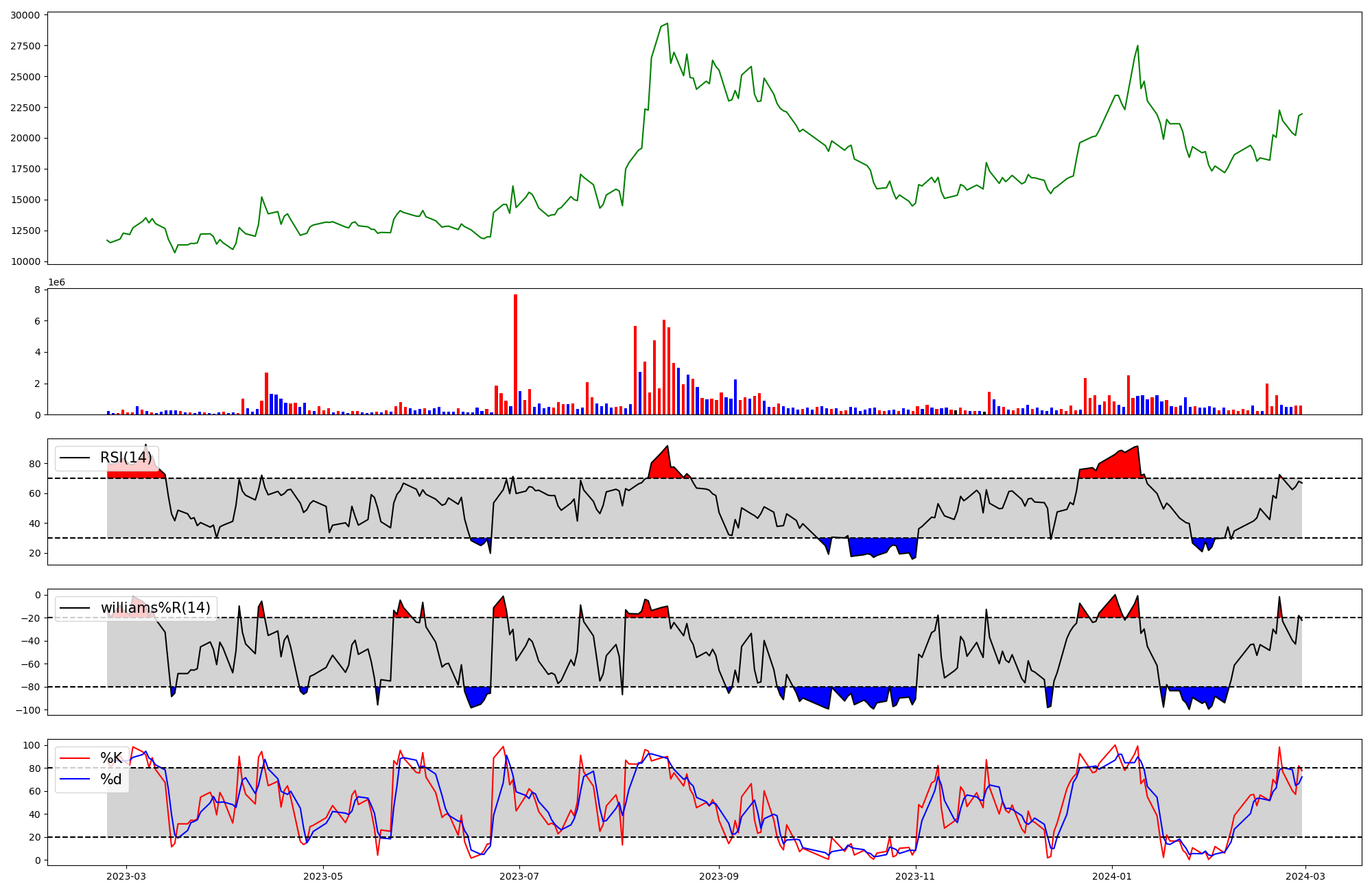 | RSI | Williams %R | stochastic(%K) | |