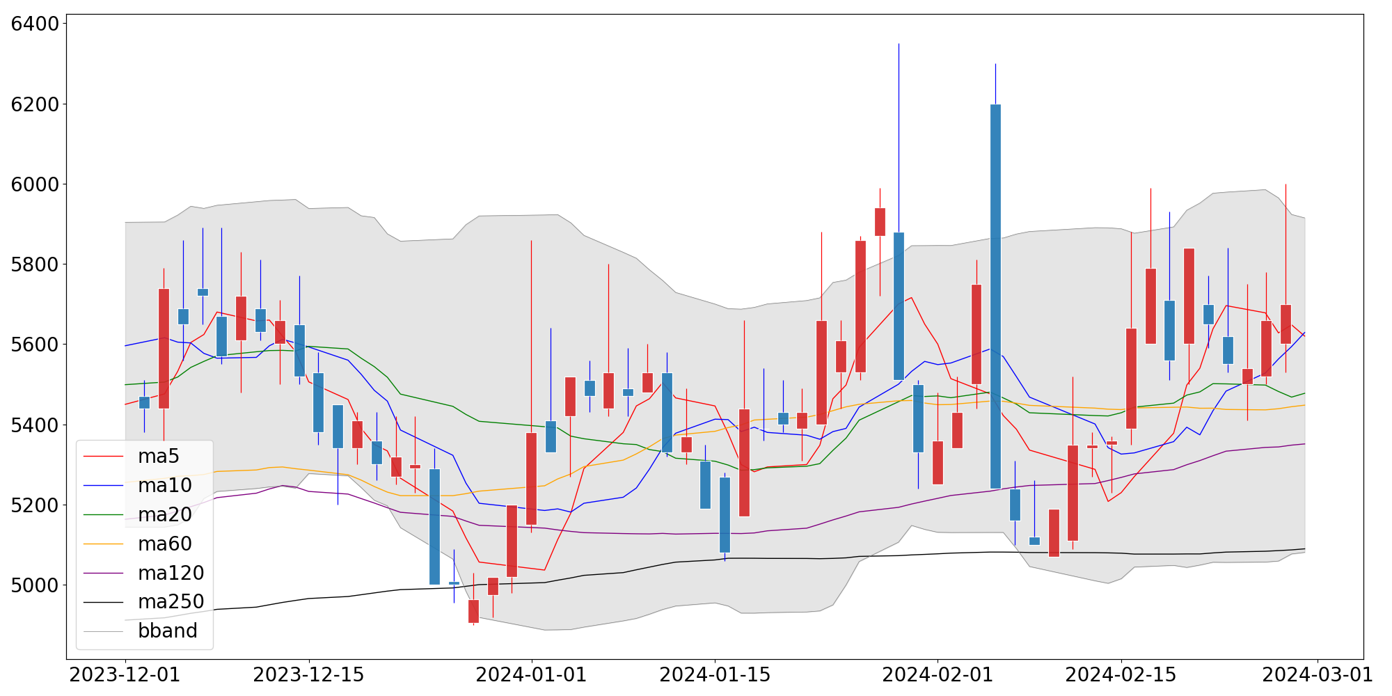 □ 오늘의 종가 : 5,700 (+40, +0.71%)