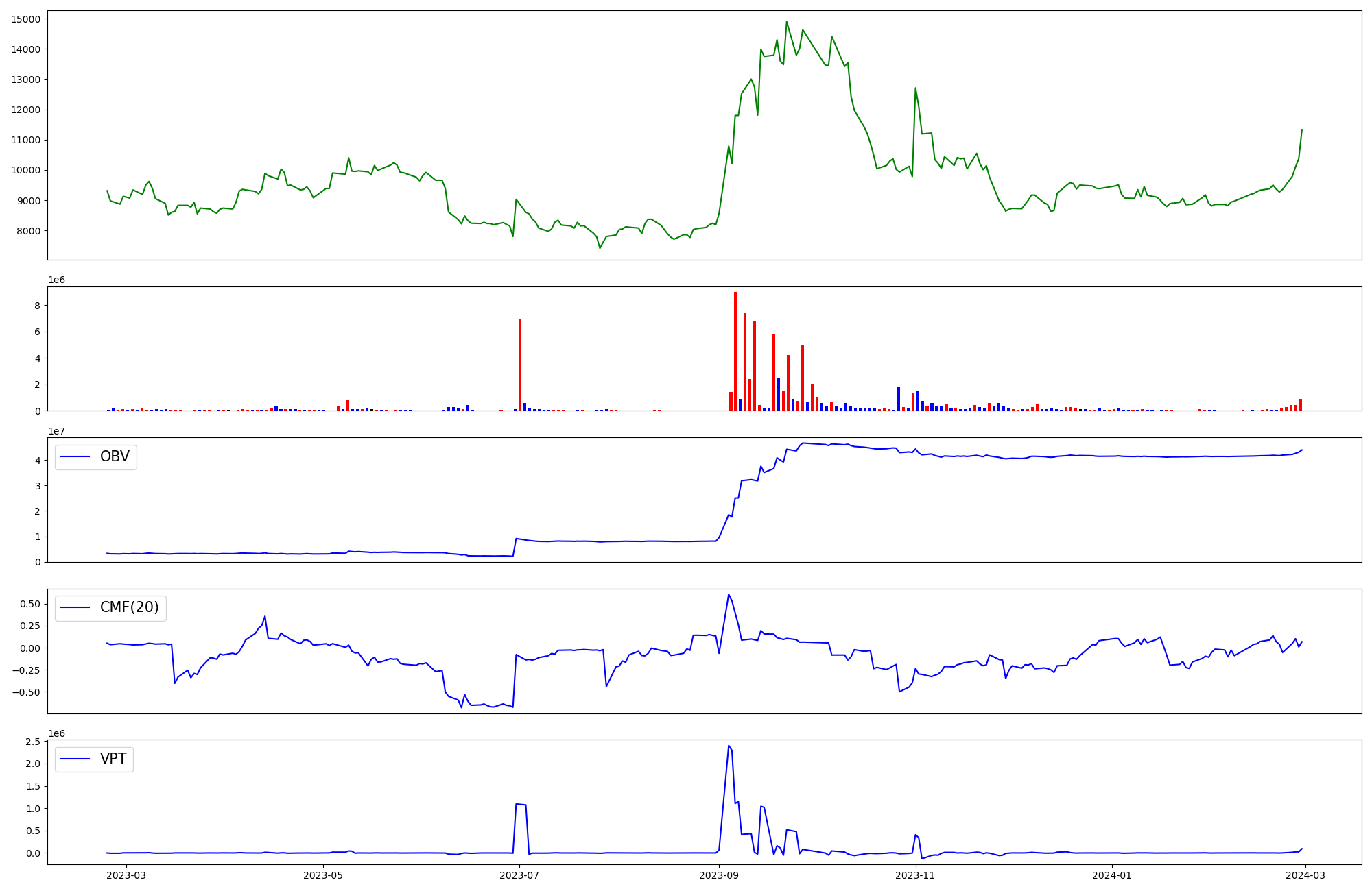 | OBV | CMF | VPT | |