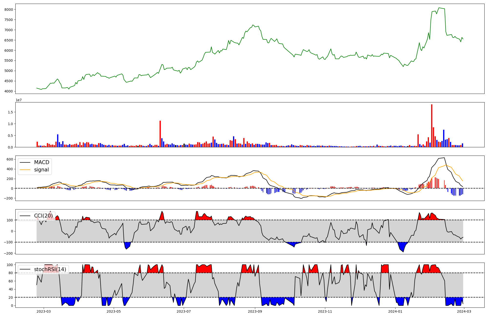 □ 오늘의 종가 : 6,550 (-80, -1.21%)