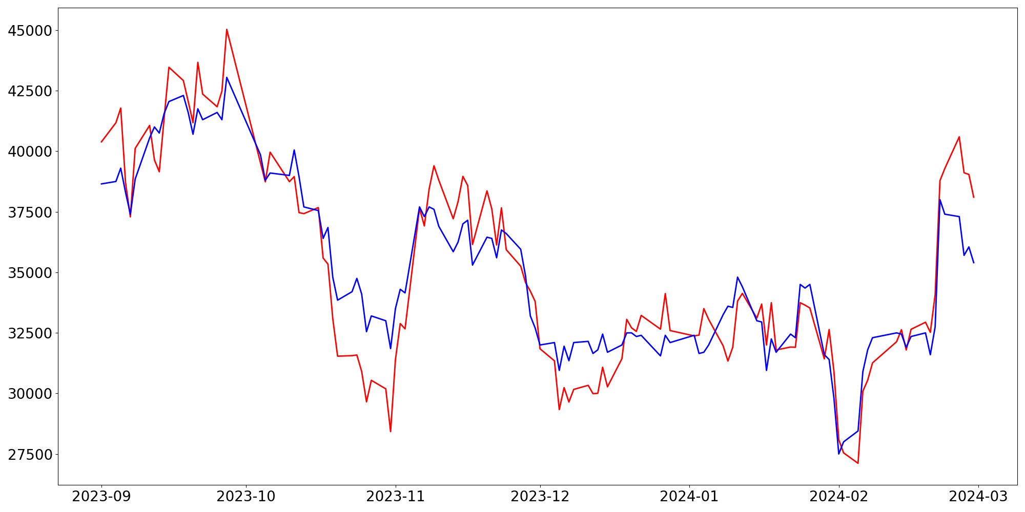 [ - : 실제값(종가) / - : 예측값(종가) ]
