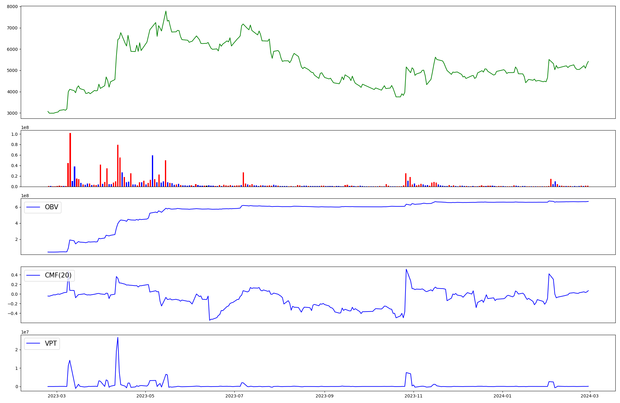 | OBV | CMF | VPT | |