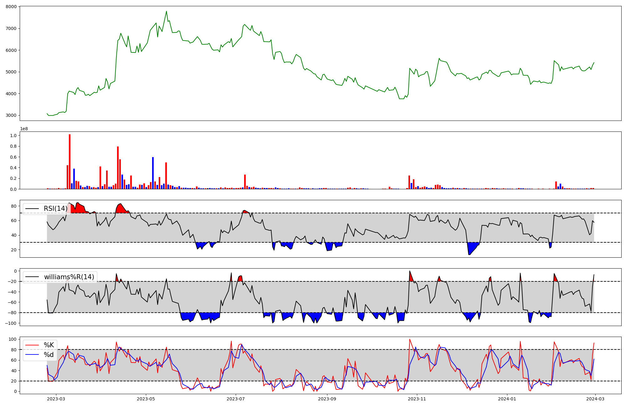 | RSI | Williams %R | stochastic(%K) | |