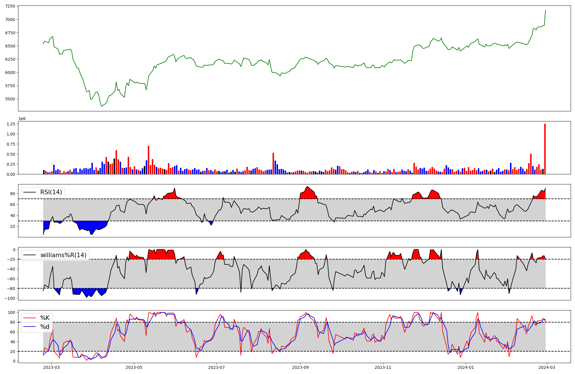 | RSI | Williams %R | stochastic(%K) | |