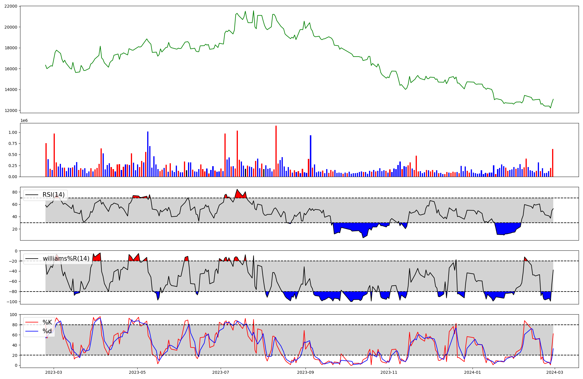 | RSI | Williams %R | stochastic(%K) | |