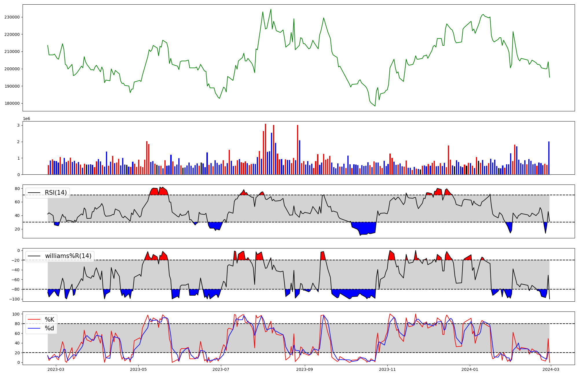 □ 중기 : 현재 종가가 중기(60일) 이동평균값(214,298원)을 하회 하여 중기적 추세 하락 중