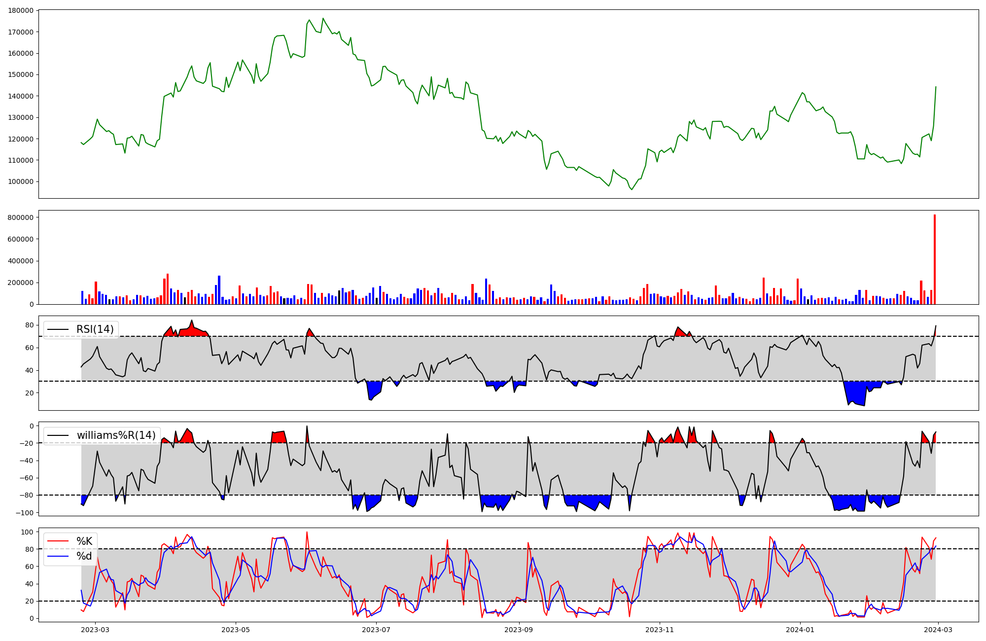 | RSI | Williams %R | stochastic(%K) | |