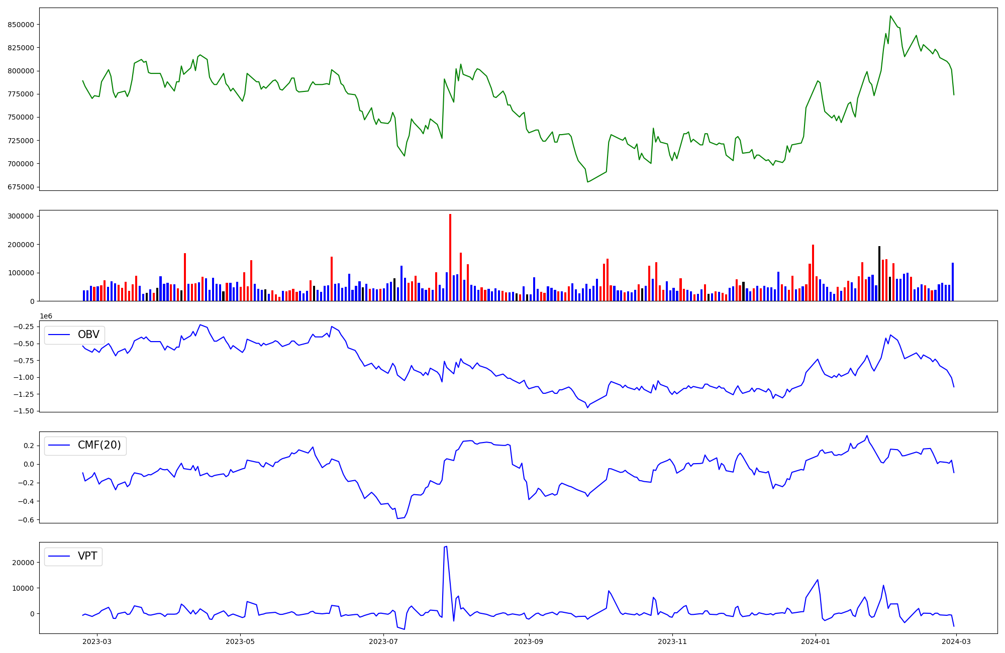 | OBV | CMF | VPT | |