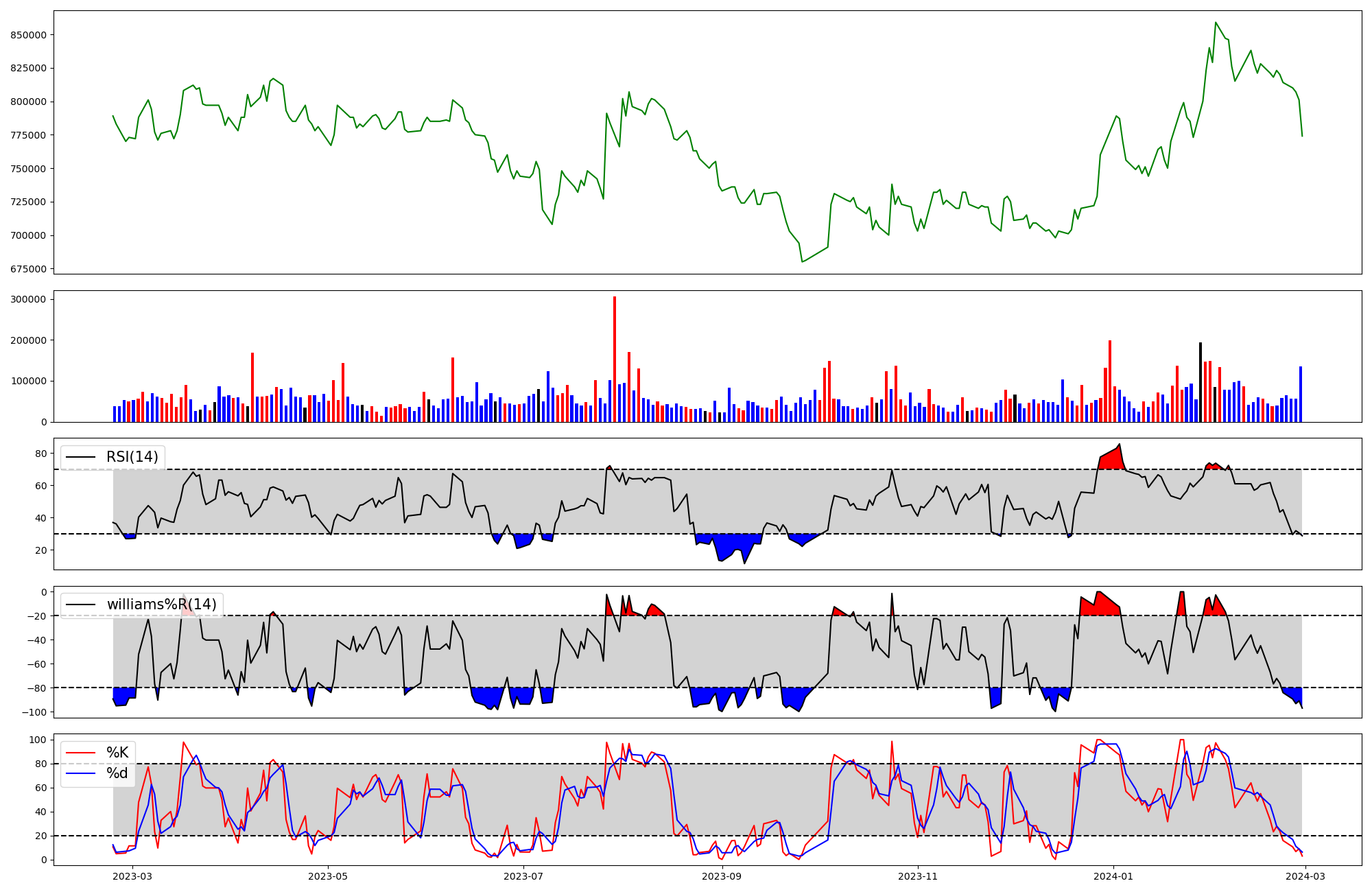 | RSI | Williams %R | stochastic(%K) | |