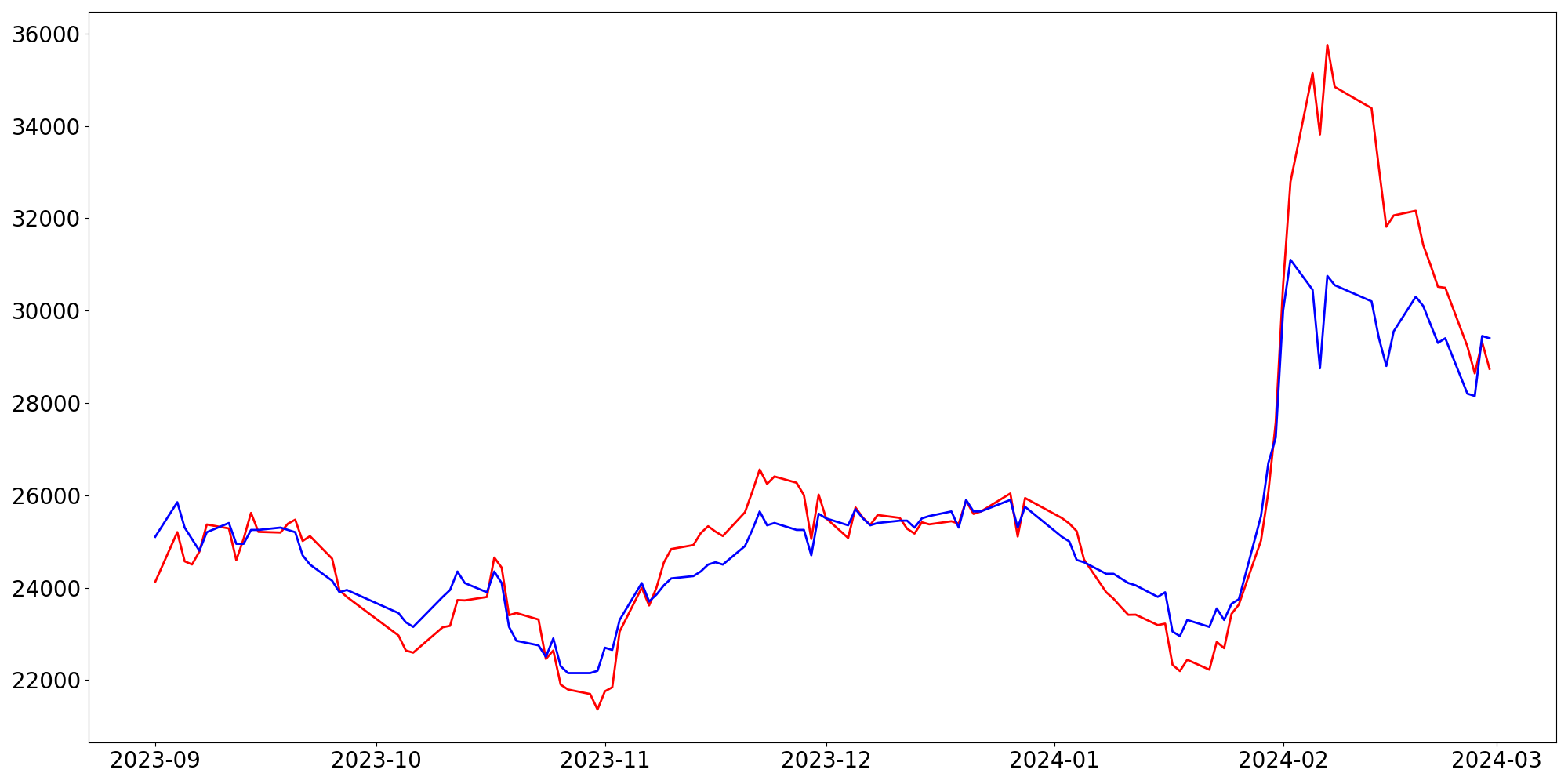 [ - : 실제값(종가) / - : 예측값(종가) ]