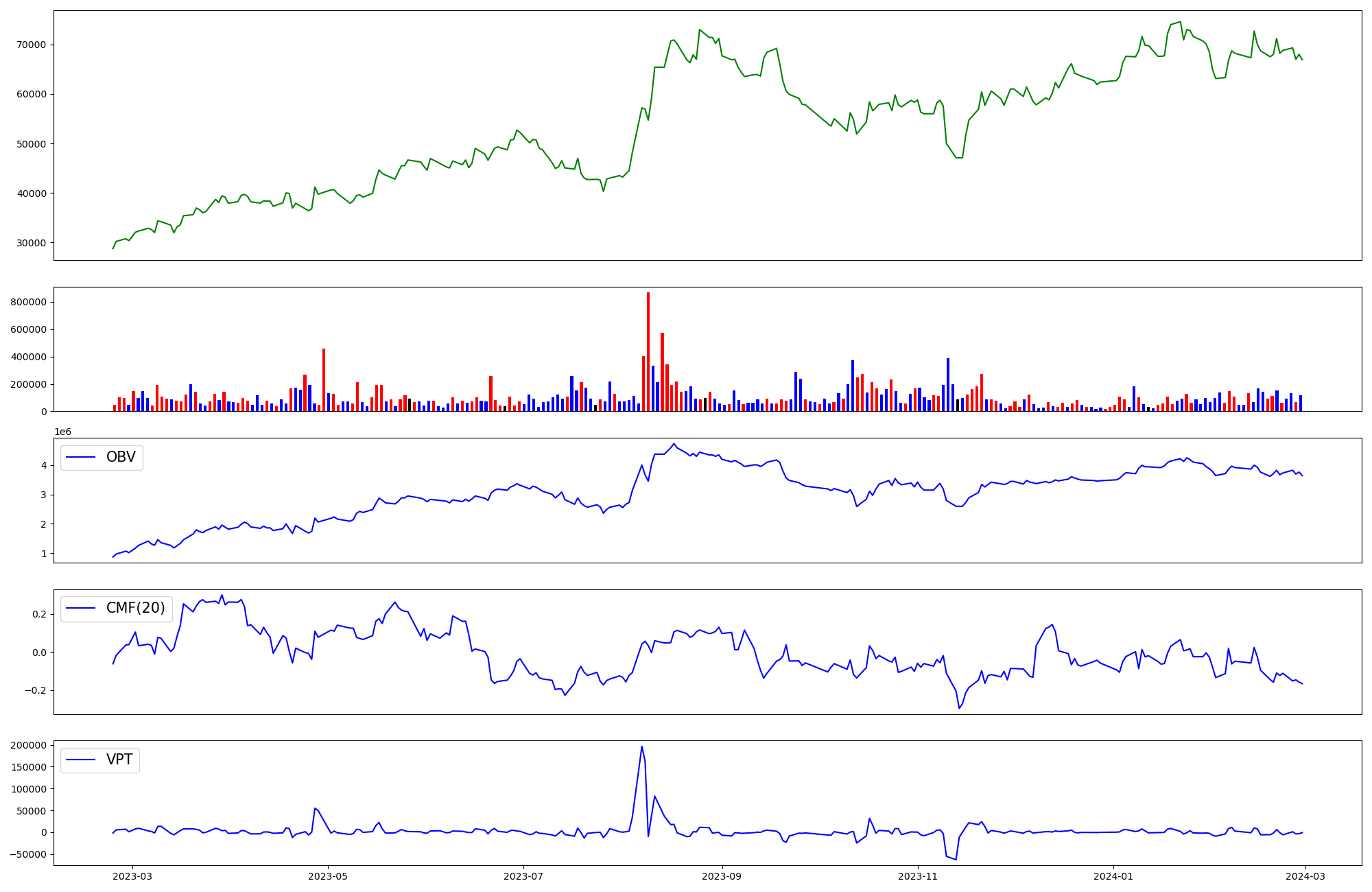| OBV | CMF | VPT | |