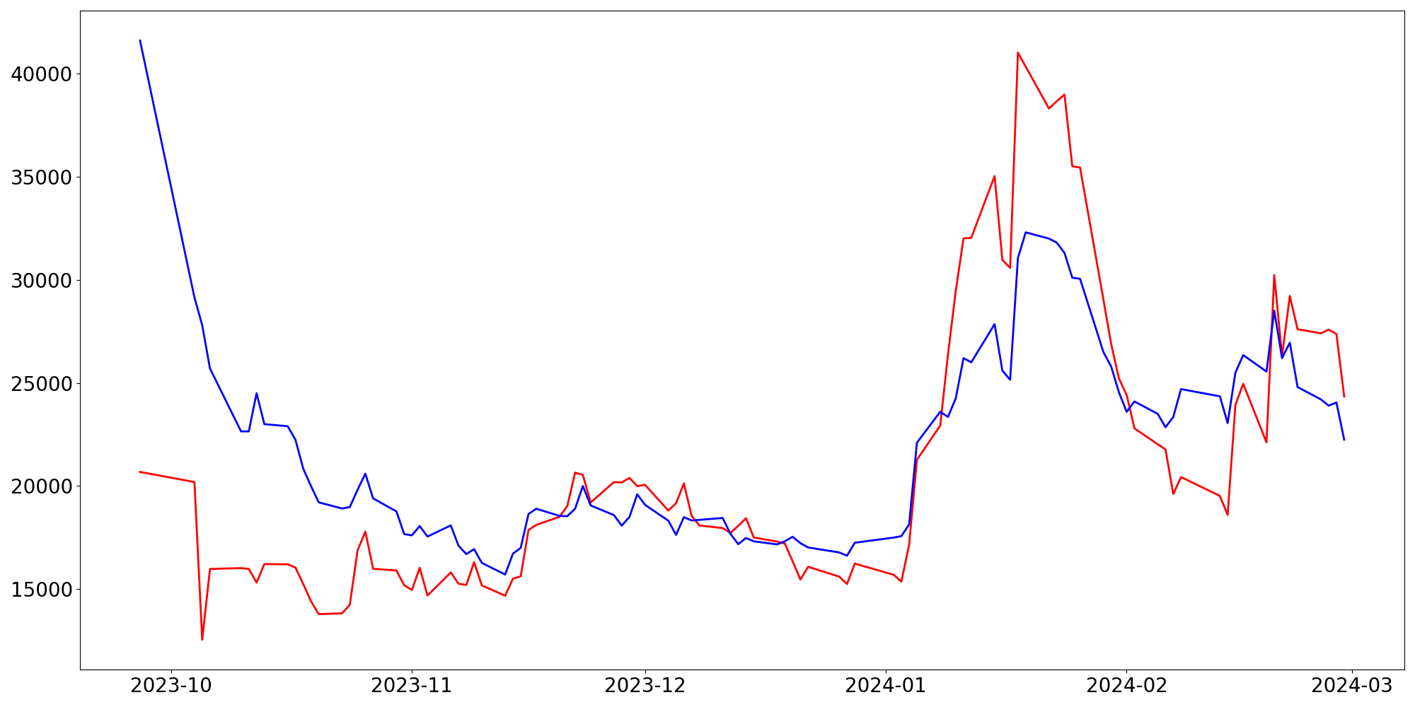 [ - : 실제값(종가) / - : 예측값(종가) ]