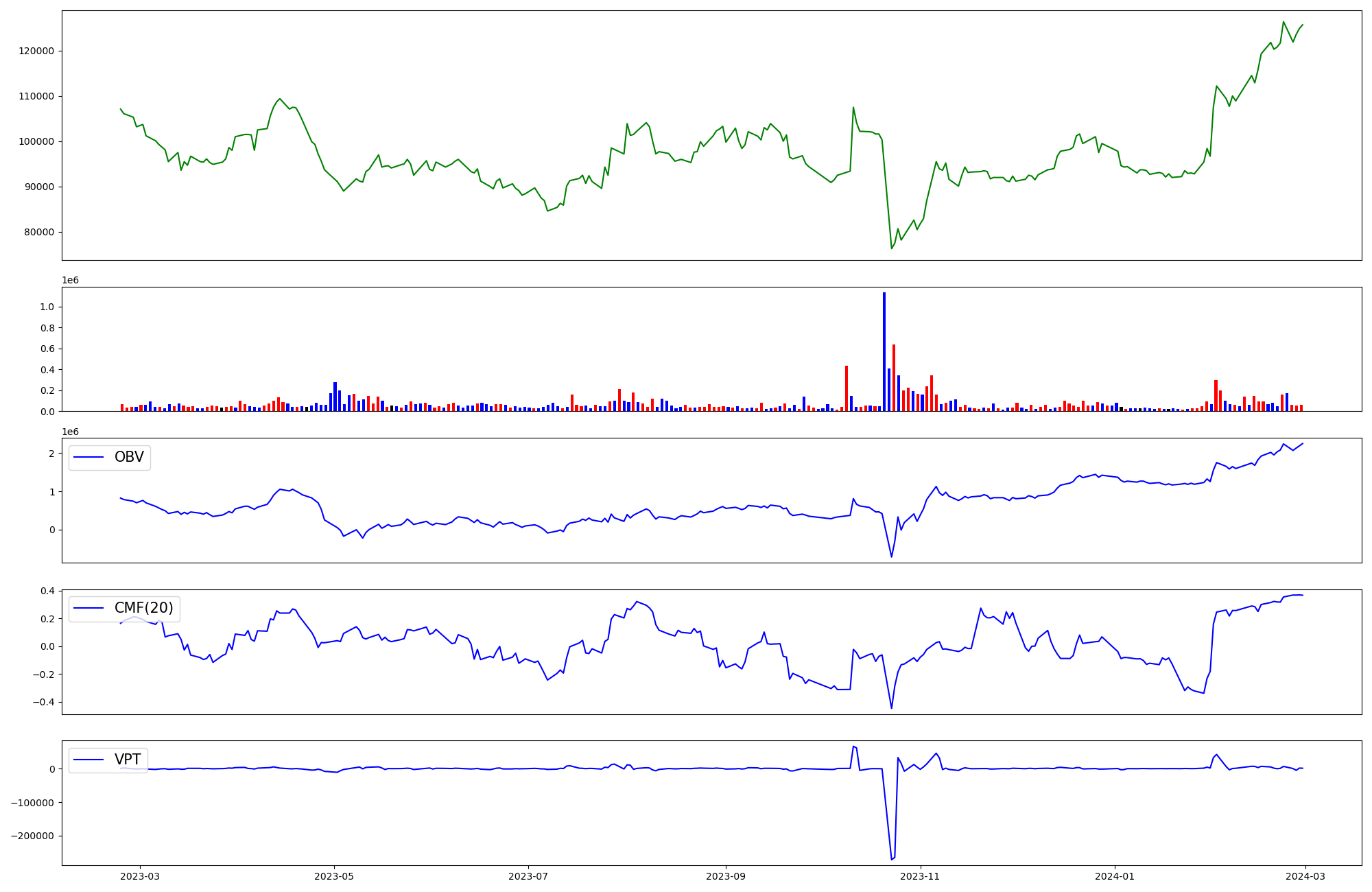 | OBV | CMF | VPT | |