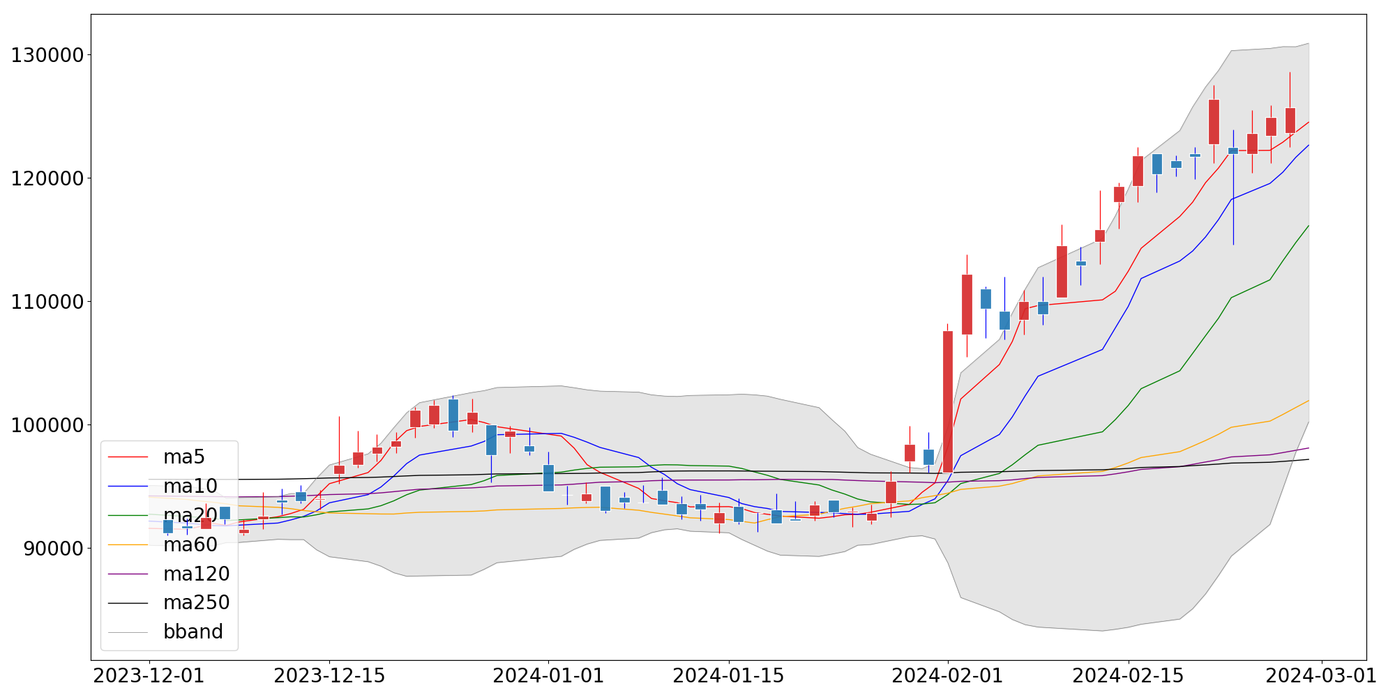 | 단순이동평균 | 124,500.00 | 122,640.00 | 116,105.00 |