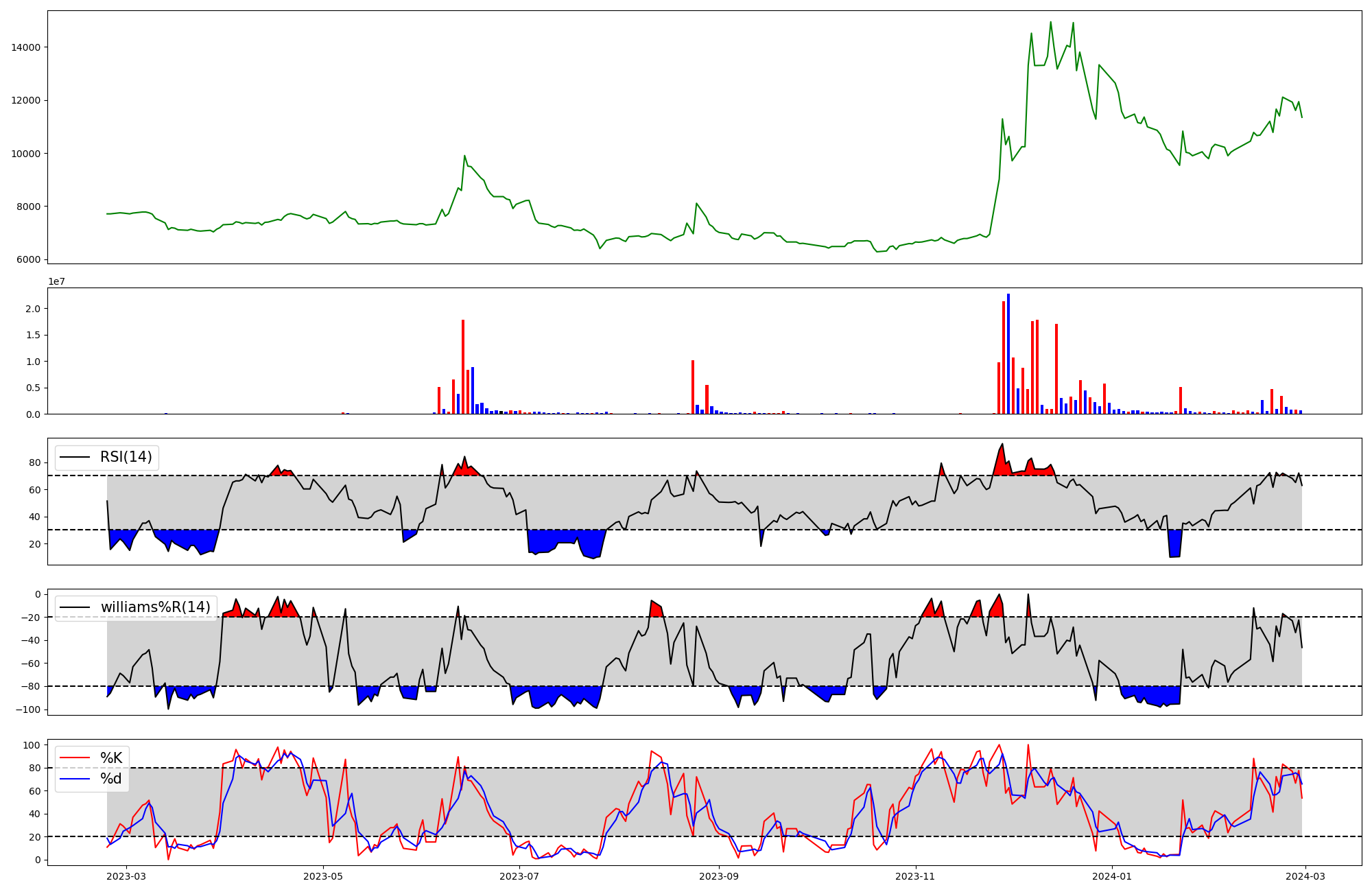 | RSI | Williams %R | stochastic(%K) | |