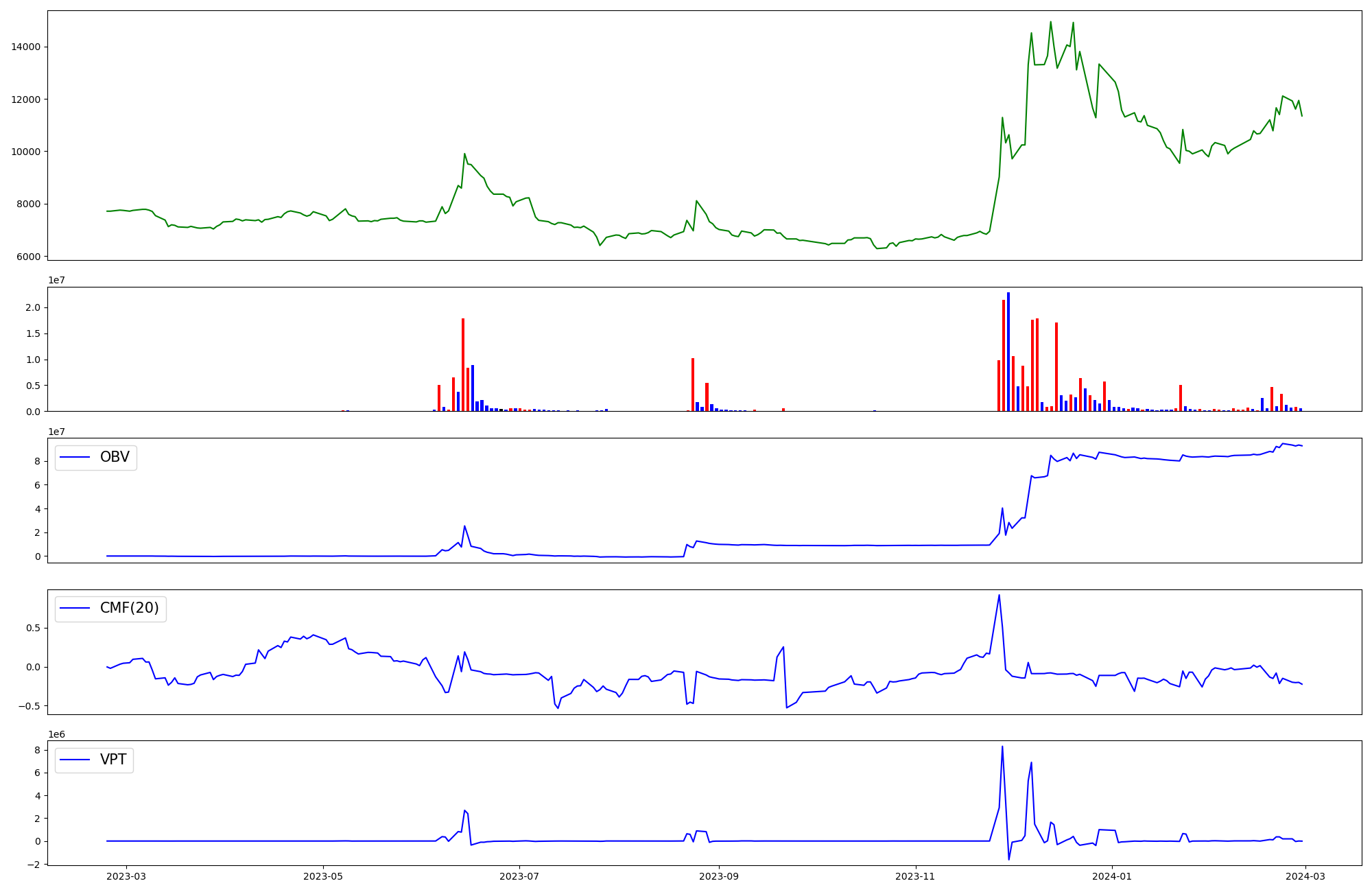 | OBV | CMF | VPT | |