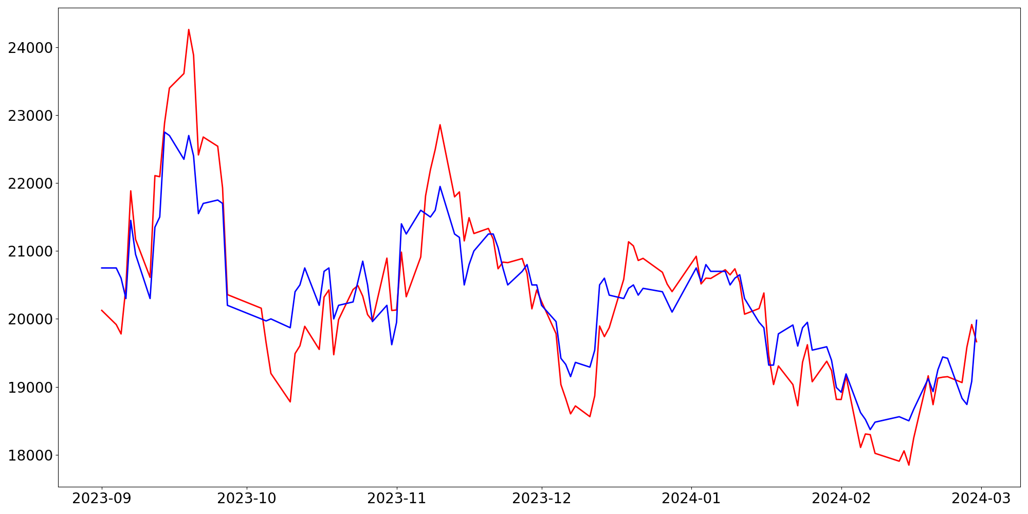 [ - : 실제값(종가) / - : 예측값(종가) ]
