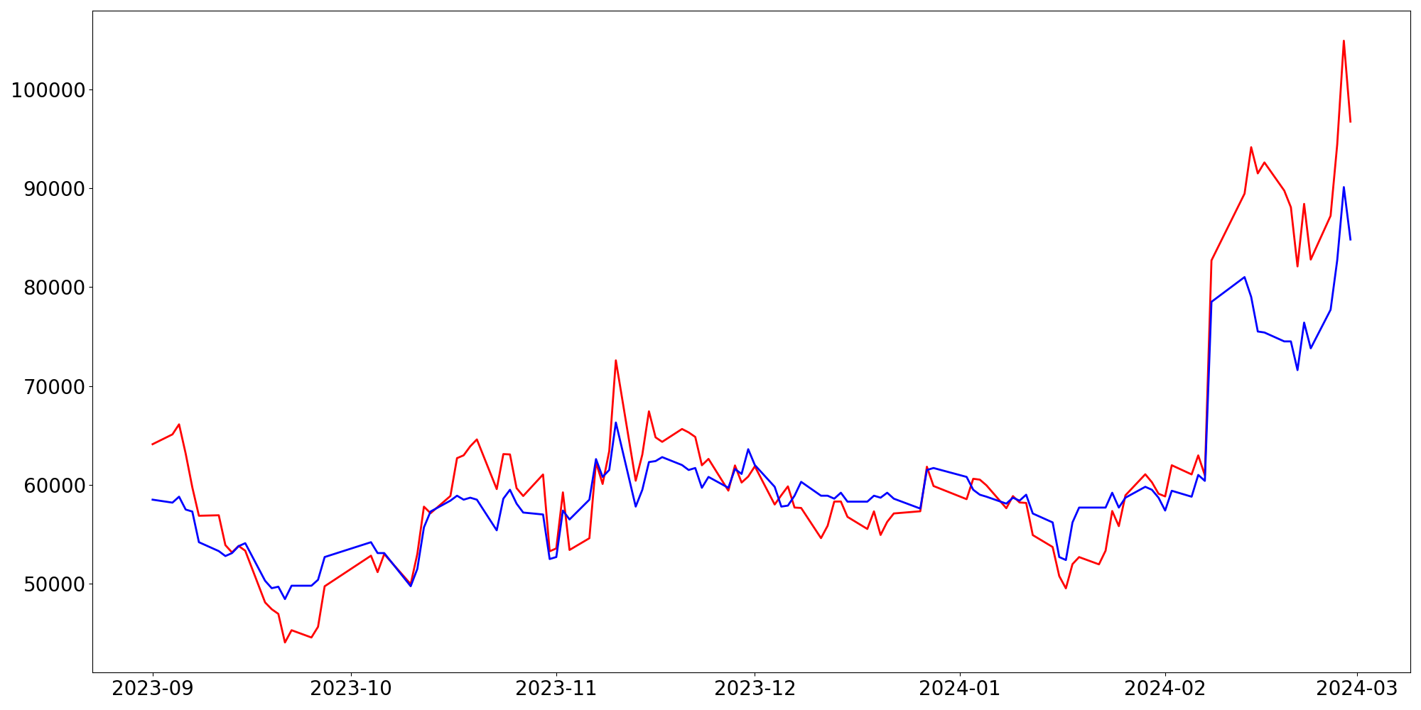 [ - : 실제값(종가) / - : 예측값(종가) ]