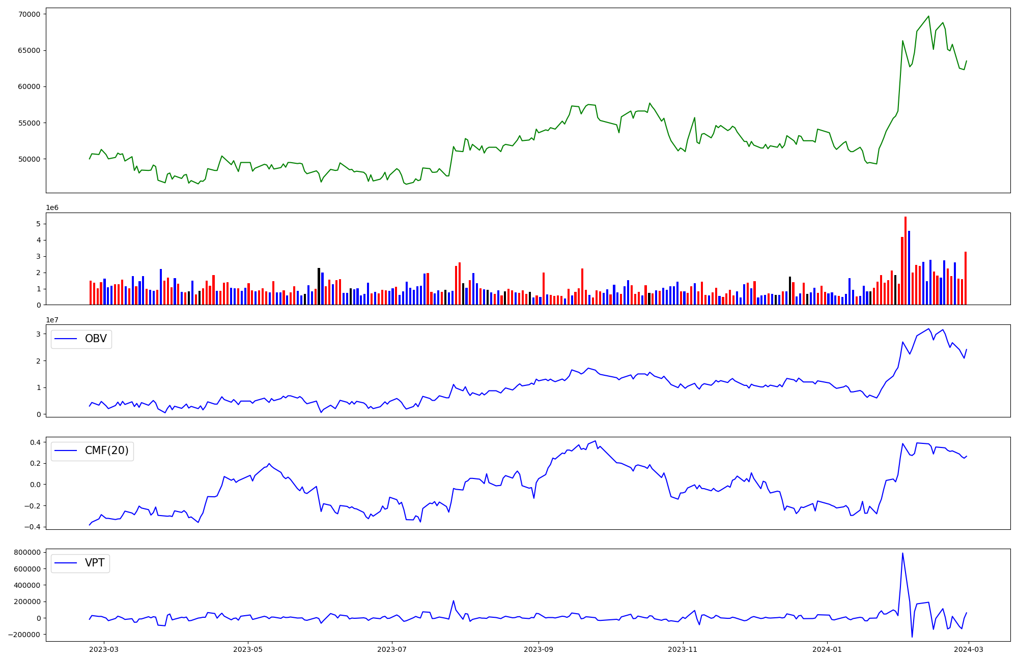 | OBV | CMF | VPT | |