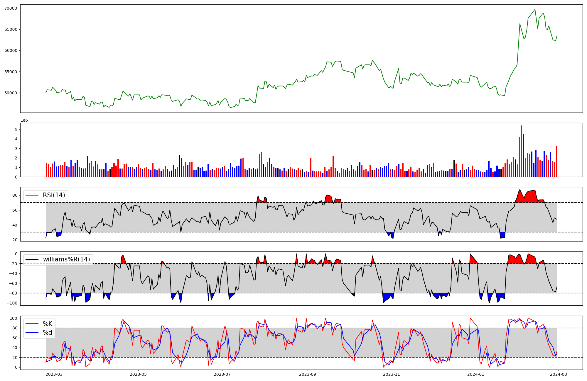 | RSI | Williams %R | stochastic(%K) | |
