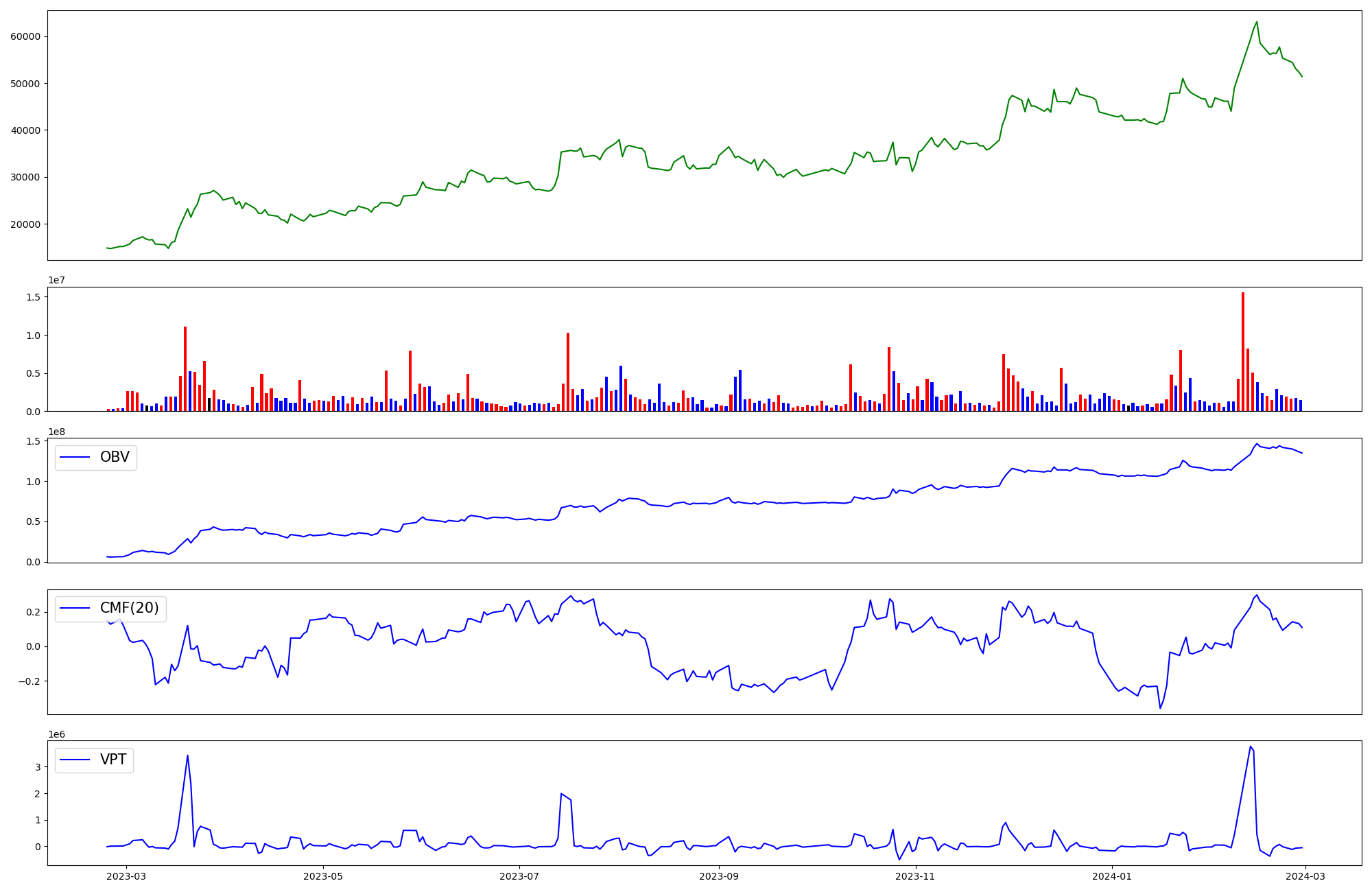 | OBV | CMF | VPT | |