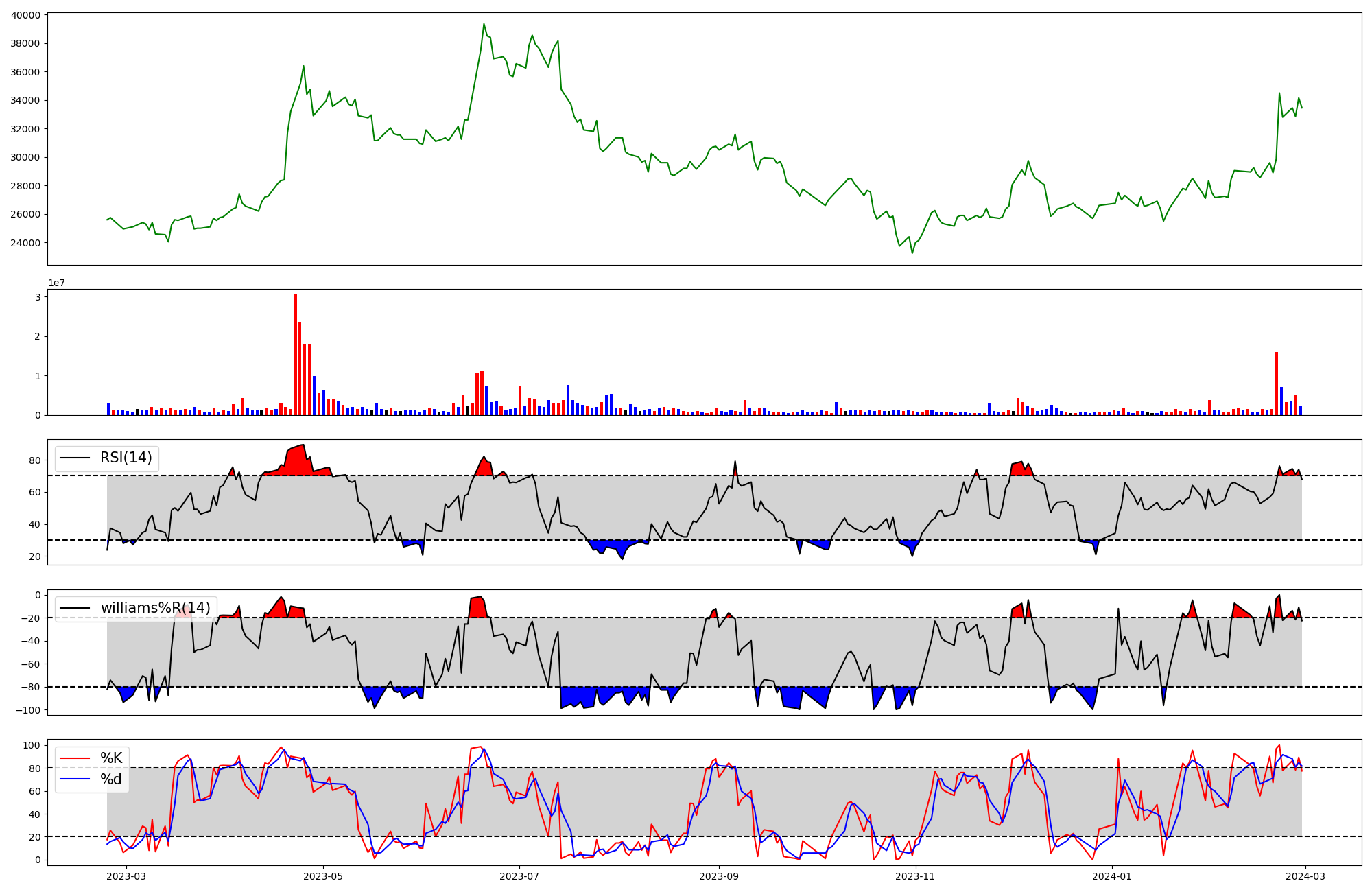 | RSI | Williams %R | stochastic(%K) | |
