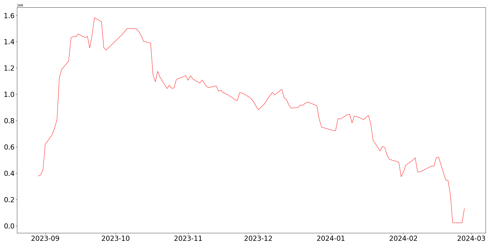| 20일 | 1,330,405 | 3,564,614 | -4,822,391 |
