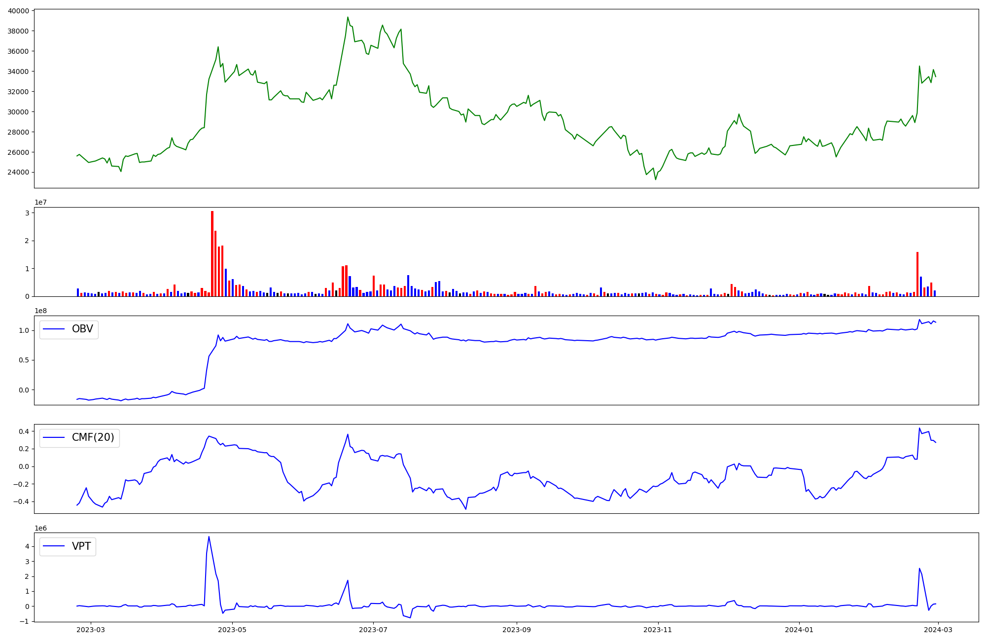 | OBV | CMF | VPT | |
