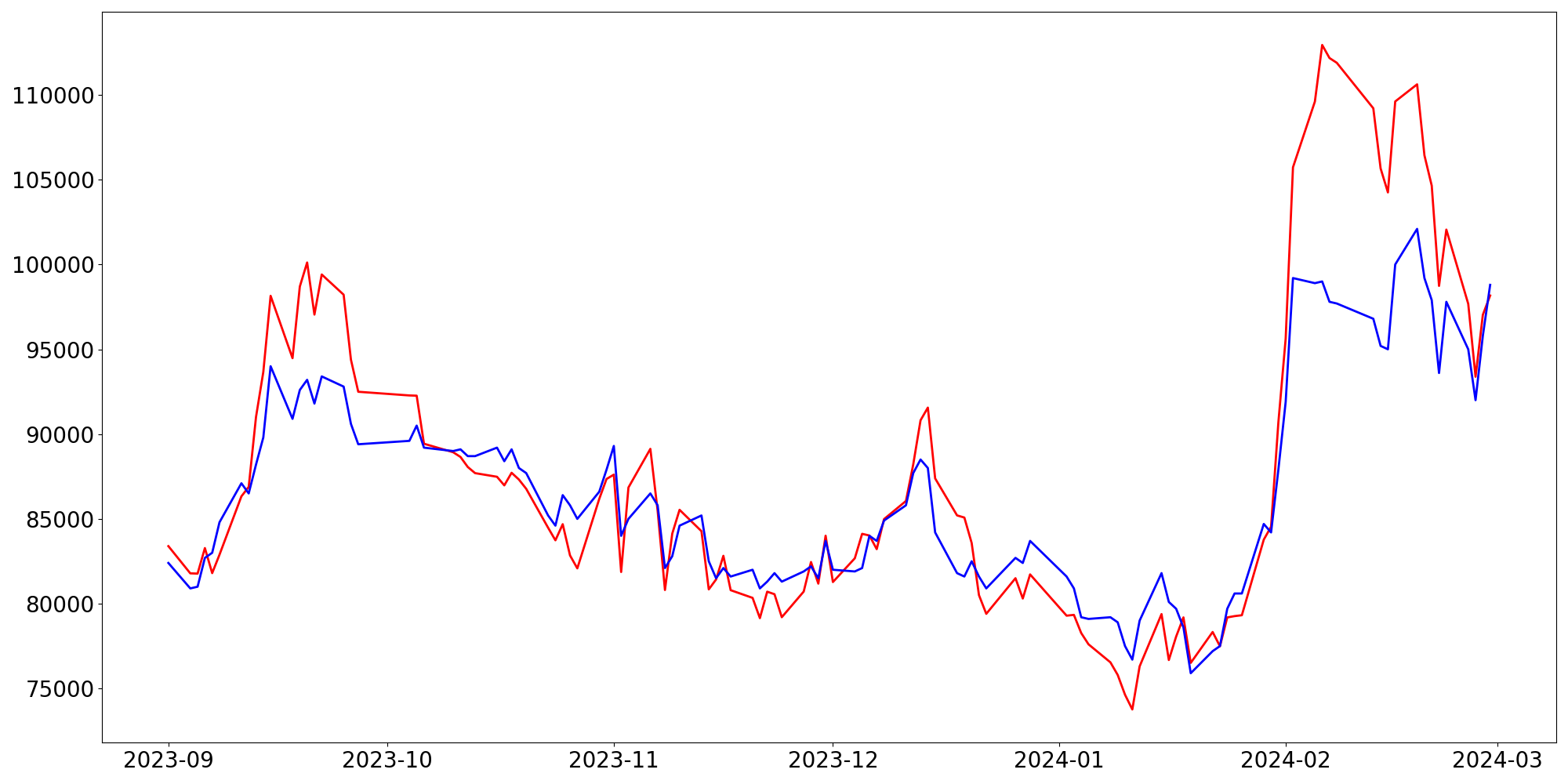 [ - : 실제값(종가) / - : 예측값(종가) ]