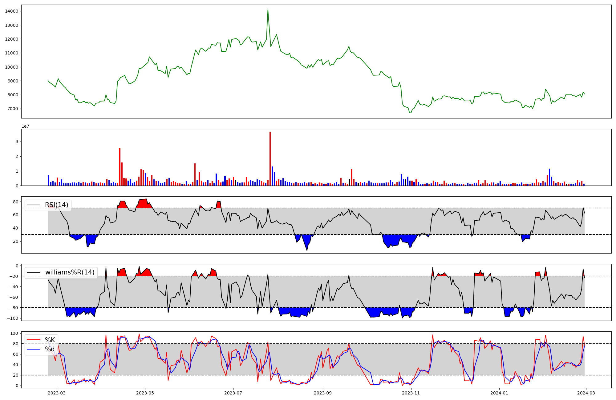 | RSI | Williams %R | stochastic(%K) | |