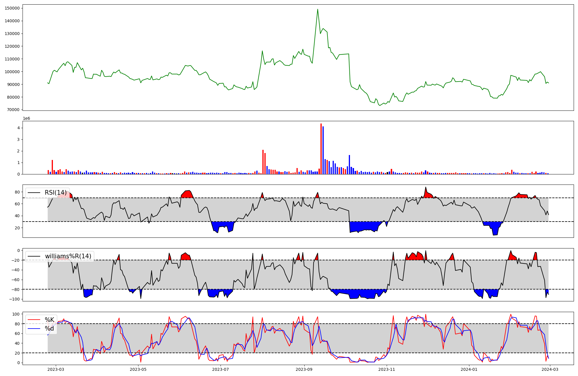 □ 오늘의 종가 : 91,000 (-700, -0.76%)