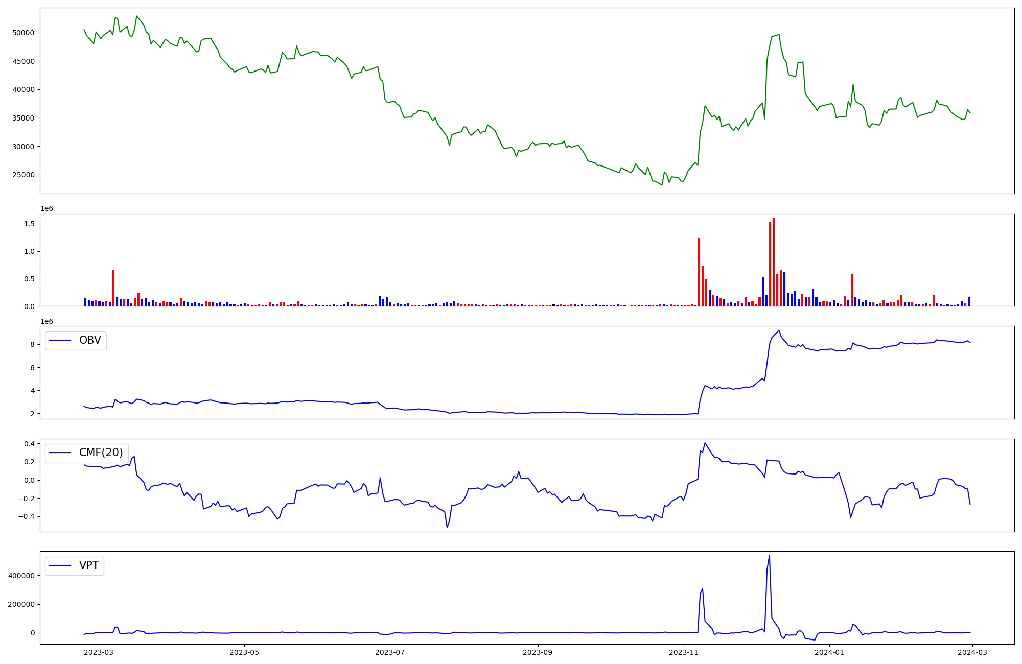 | OBV | CMF | VPT | |