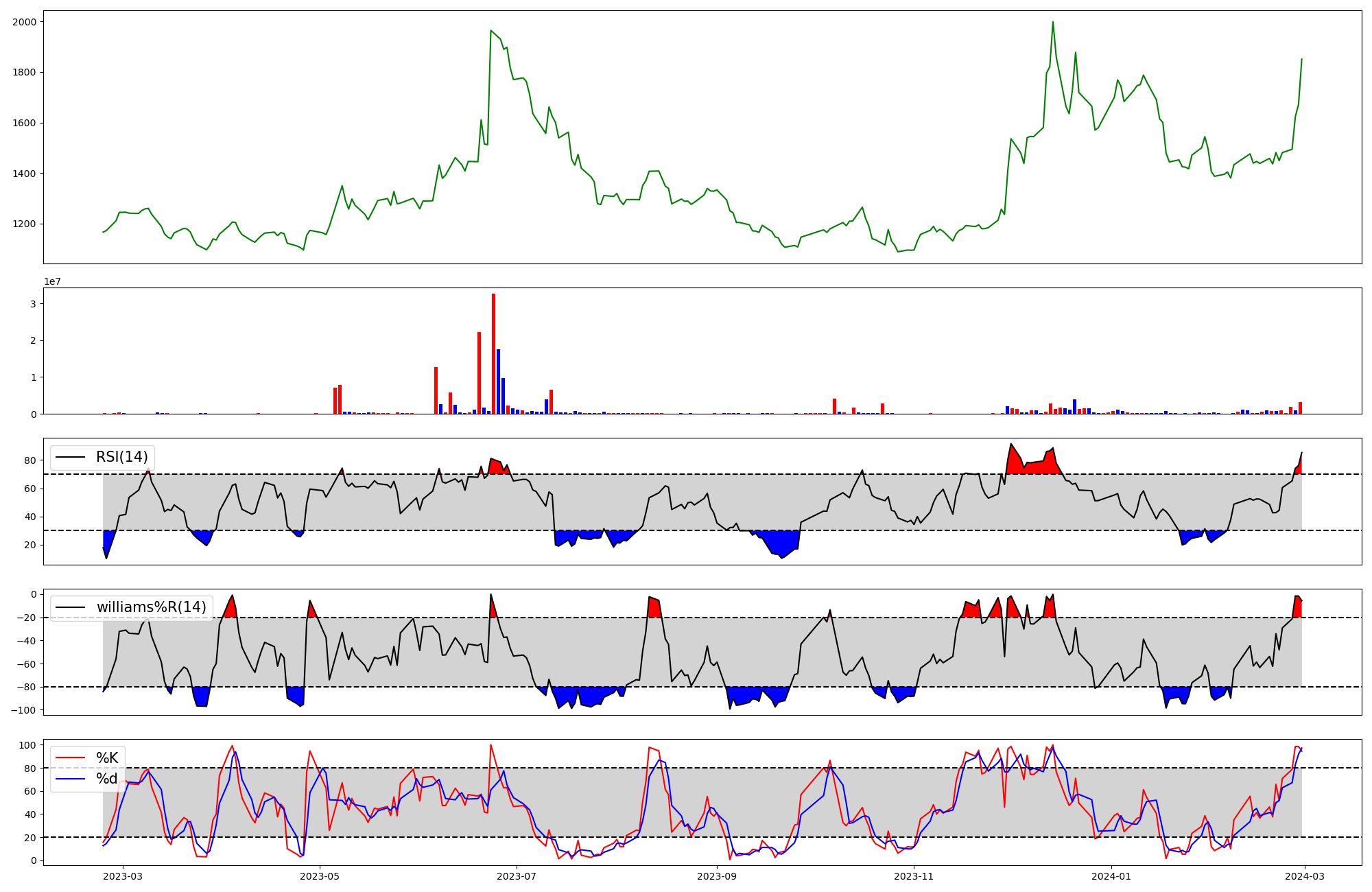 | RSI | Williams %R | stochastic(%K) | |