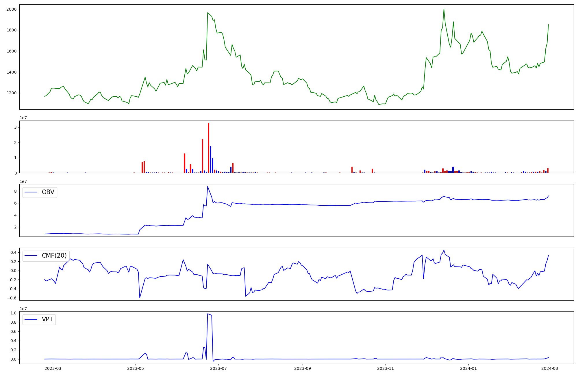 | OBV | CMF | VPT | |