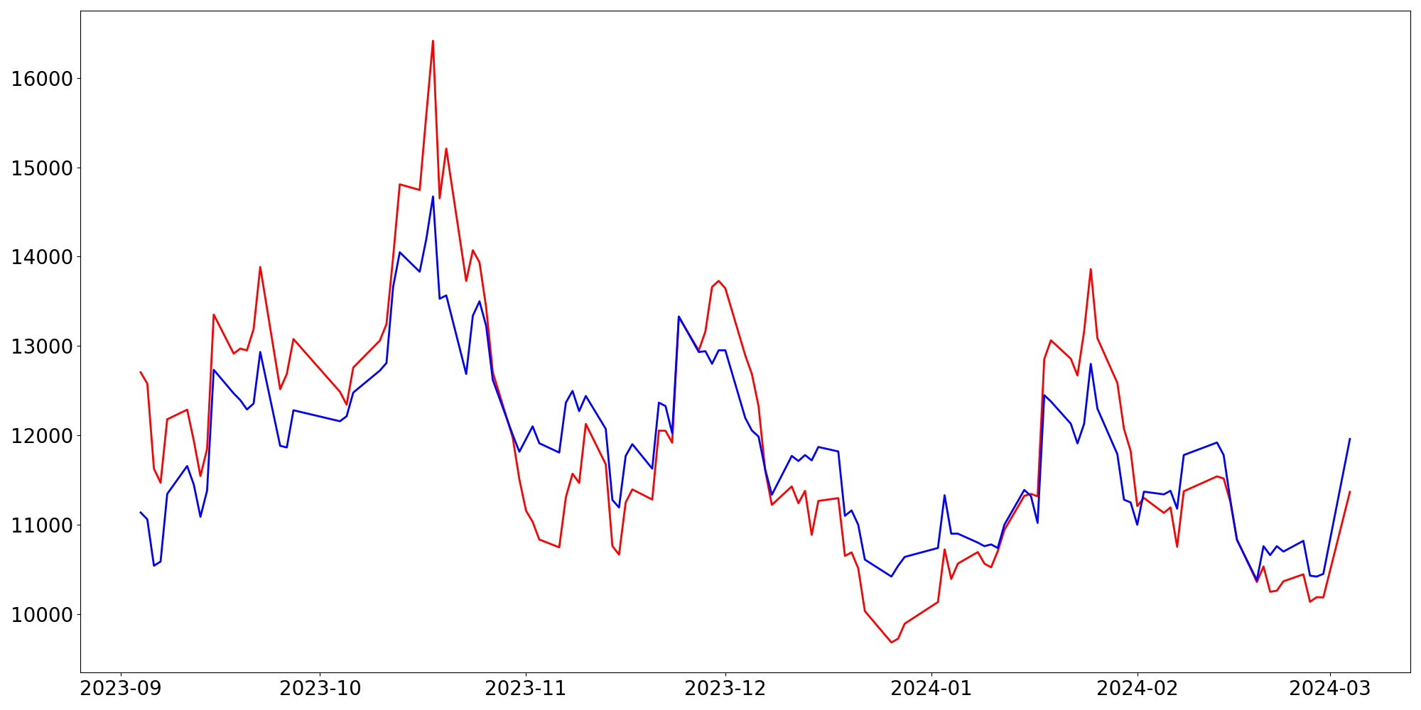 [ - : 실제값(종가) / - : 예측값(종가) ]