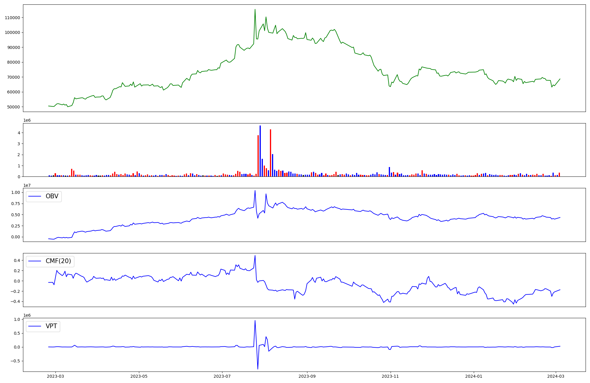 | OBV | CMF | VPT | |