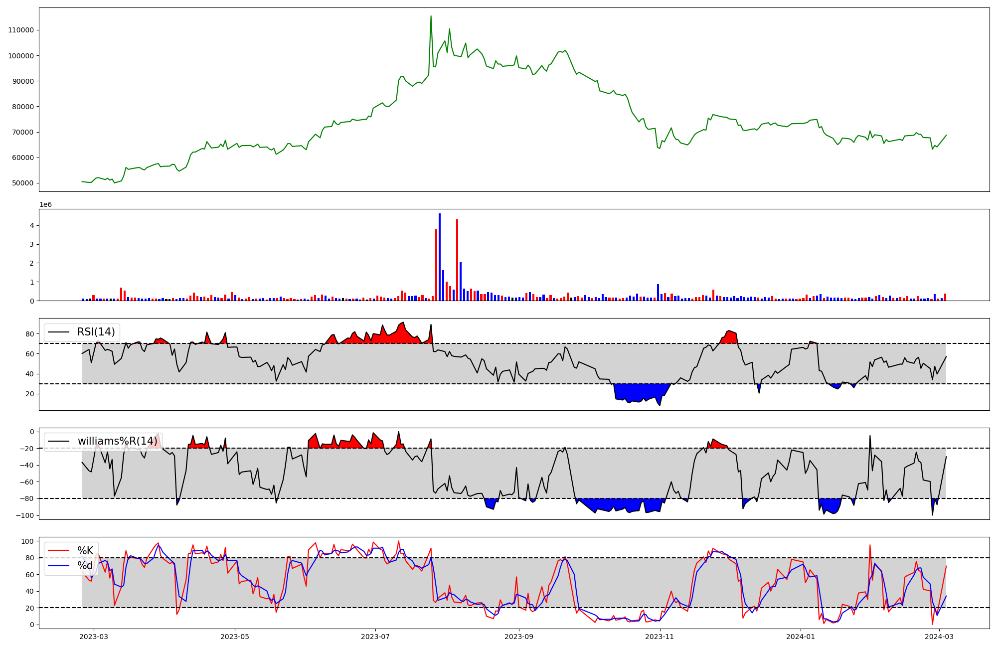| RSI | Williams %R | stochastic(%K) | |