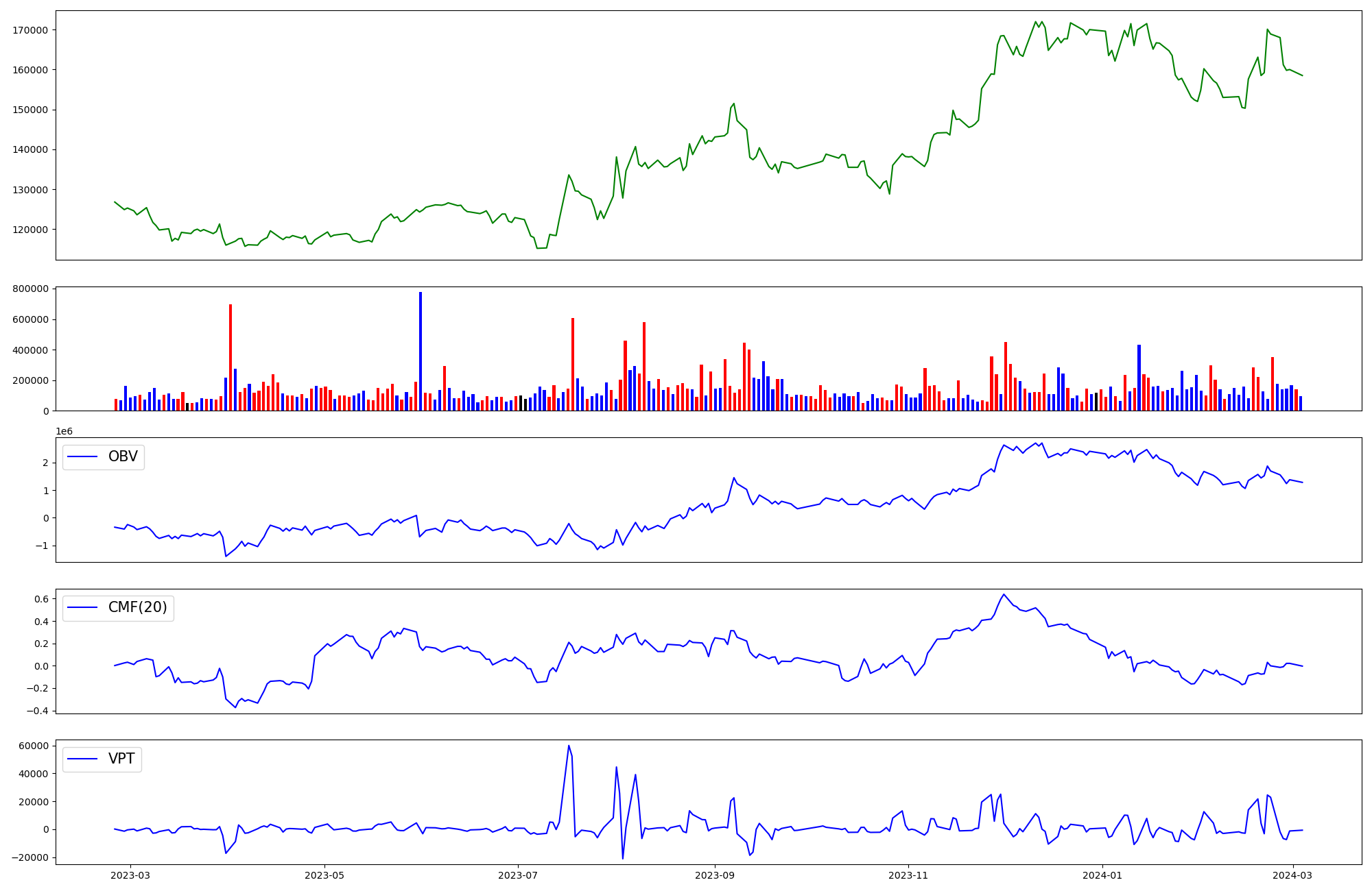 | OBV | CMF | VPT | |