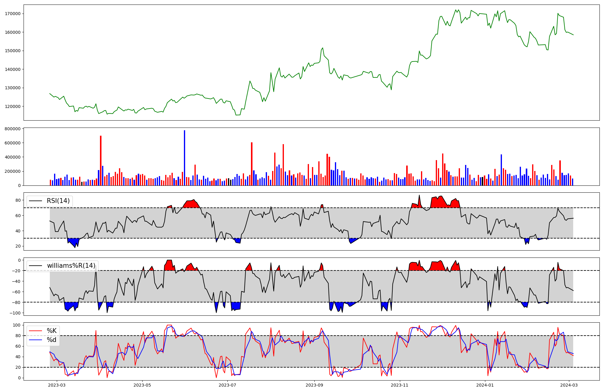 | RSI | Williams %R | stochastic(%K) | |