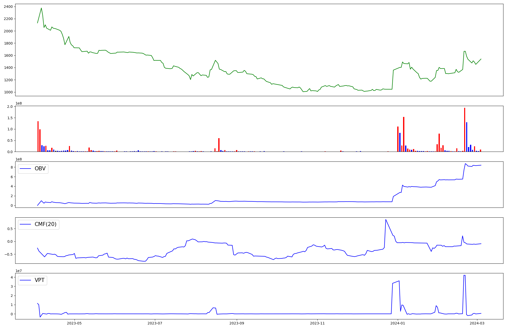 | OBV | CMF | VPT | |