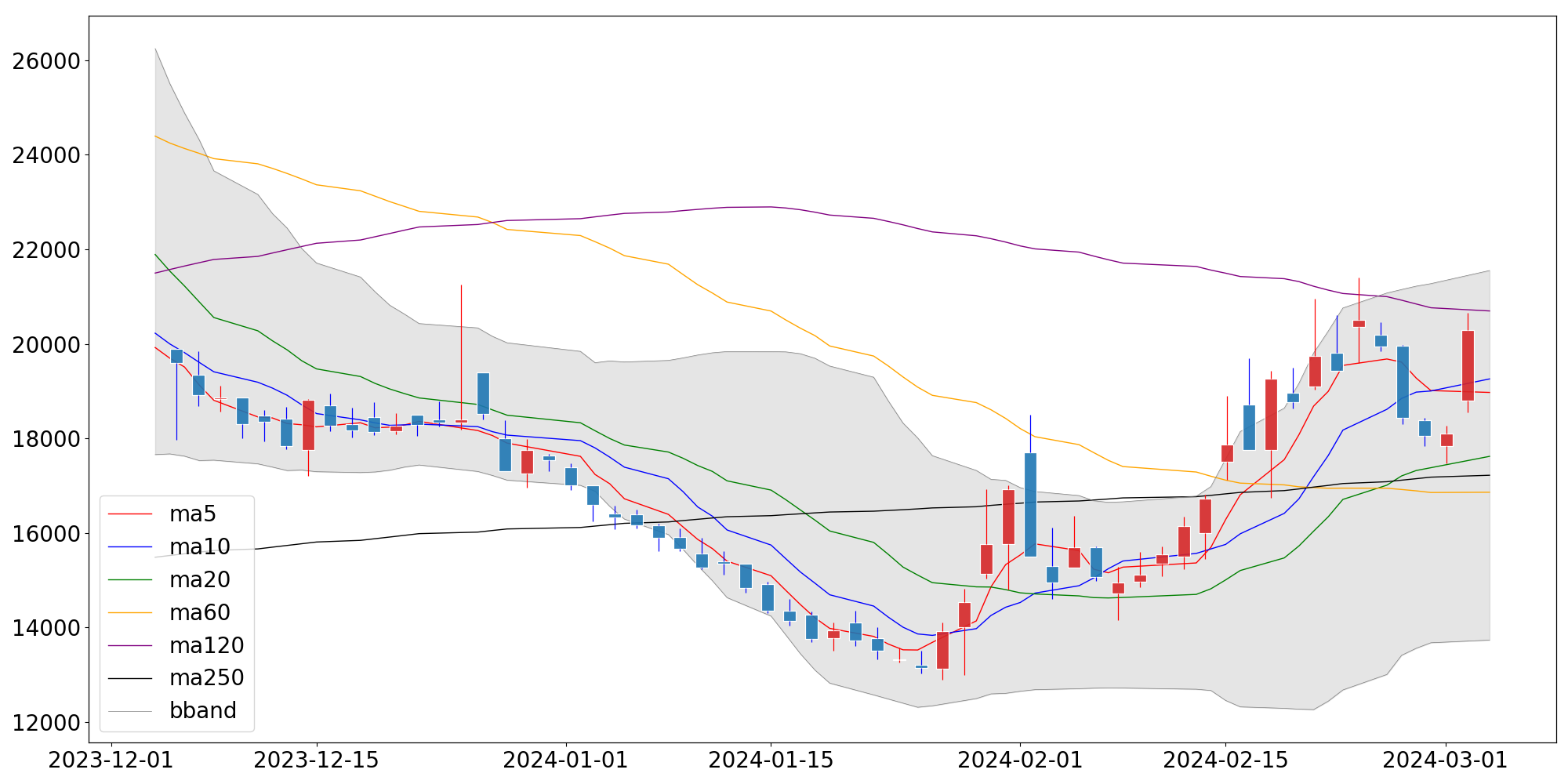 □ 오늘의 종가 : 20,300 (+2,190, +12.09%)