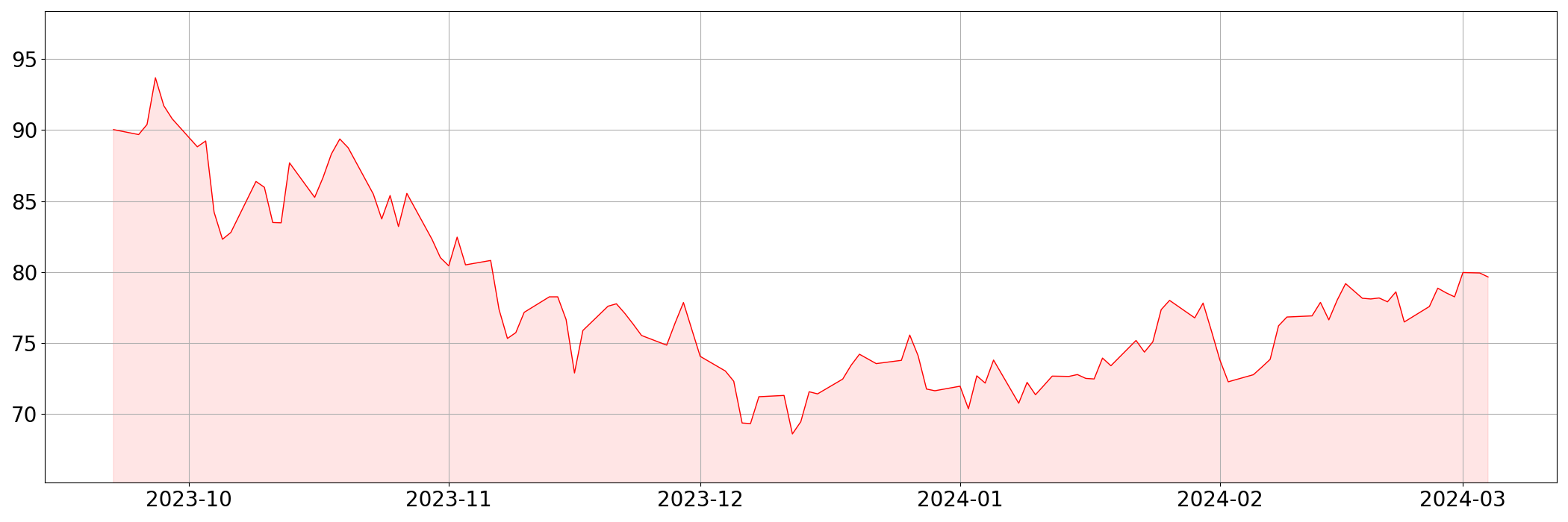 | 현재 | 79.66 | -0.28 | -0.35% |