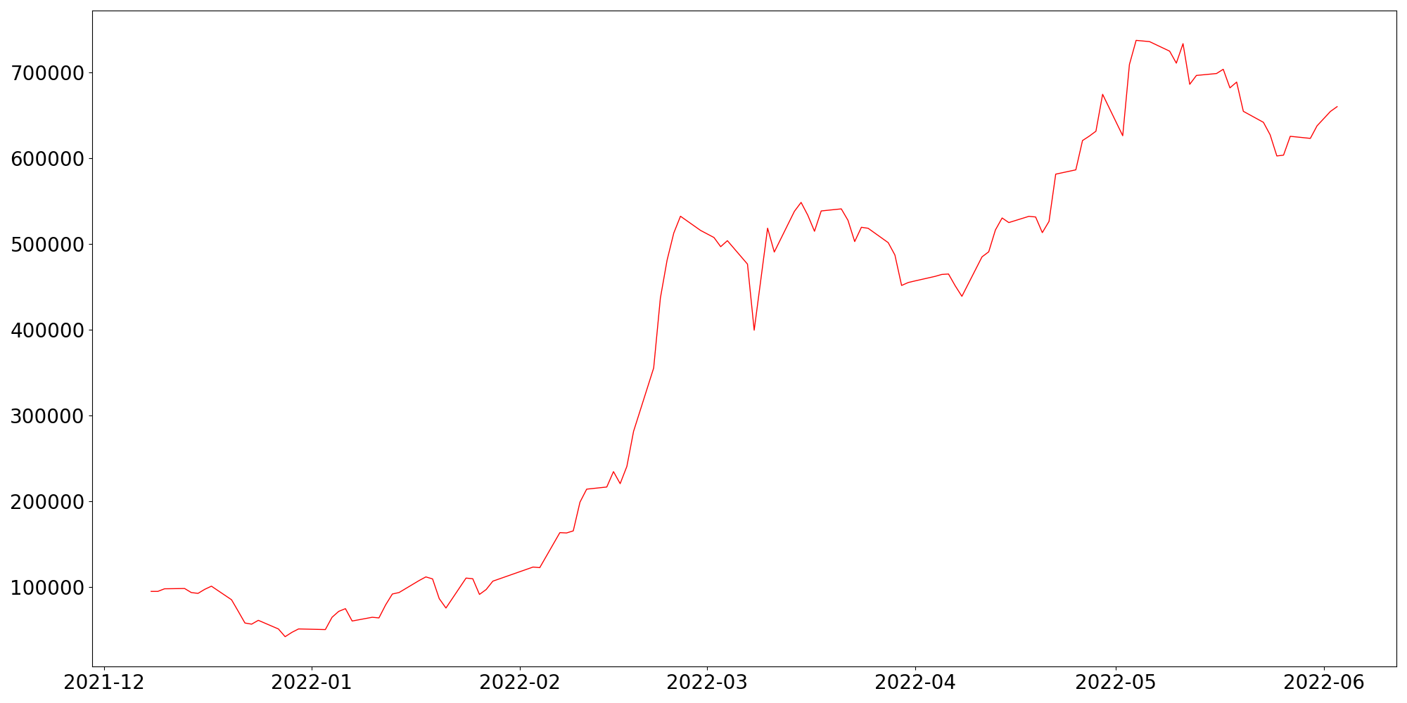 [ - : 실제값(종가) / - : 예측값(종가) ]