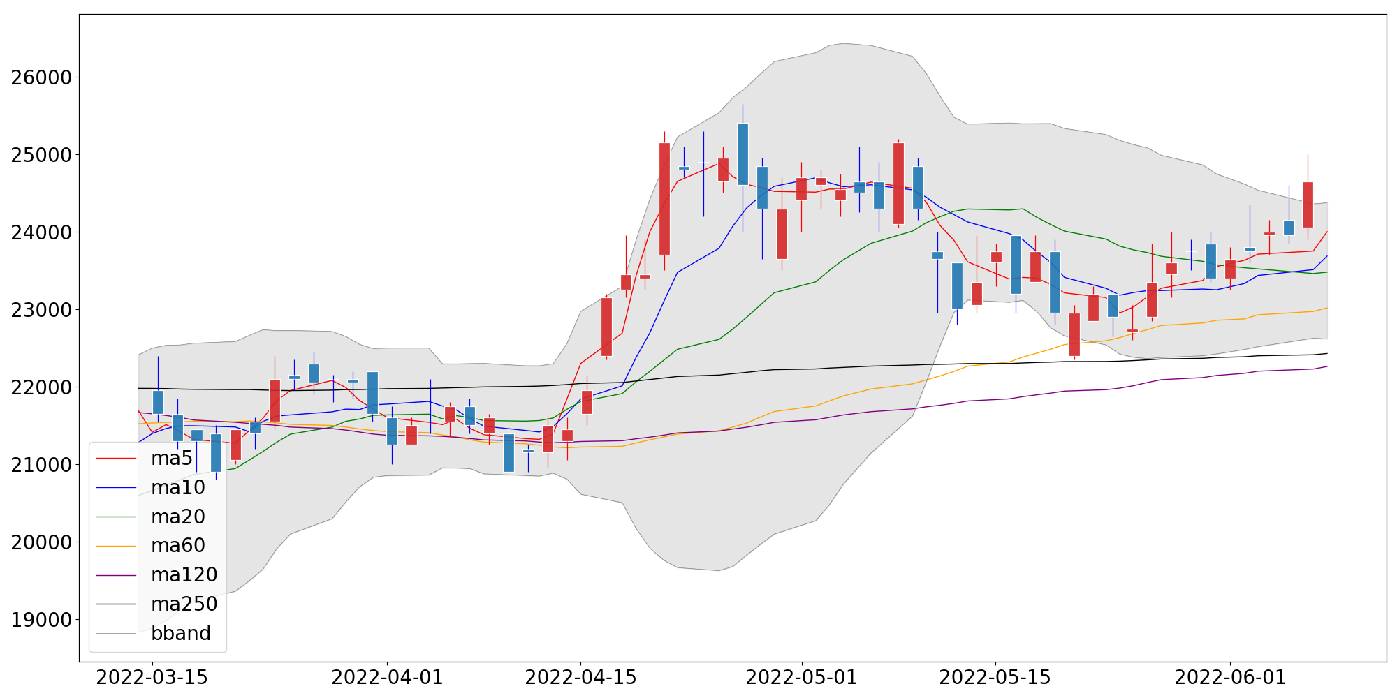 | 단순이동평균 | 23,015.83 | 22,260.00 | 22,427.80 |